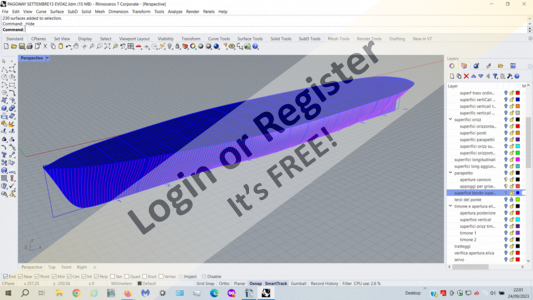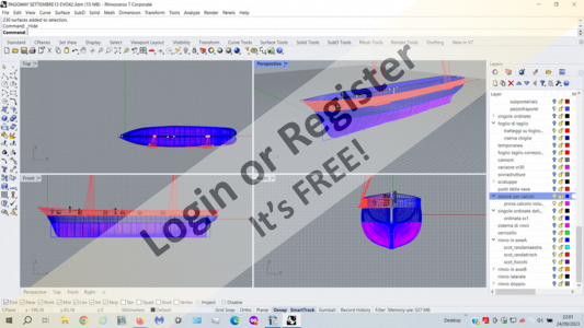 3. The hull has a totally different size and shape as it is completely invented. The model has no equal in any existing ship. Compared to the reference ones it has a greater displacement as the central ordinates are wider. Although it maintains a harmonious and slender line, it is reminiscent (limited to the hull) more of a commercial ship than a warship.