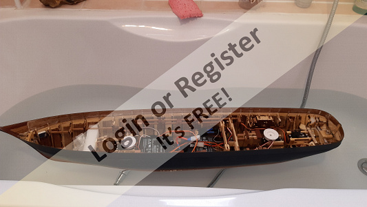5 Rudder: The rudder is different from the original ones of the period, both in size and shape. It also lacks construction details such as the gudgeons and pintles. A faithfully reproduced rudder would have had little or no effectiveness in RC navigation. In hindsight, I could have faithfully reproduced it and, only during navigation, I could have applied a removable addition (perhaps made of transparent plastic) that would be invisible once underwater.