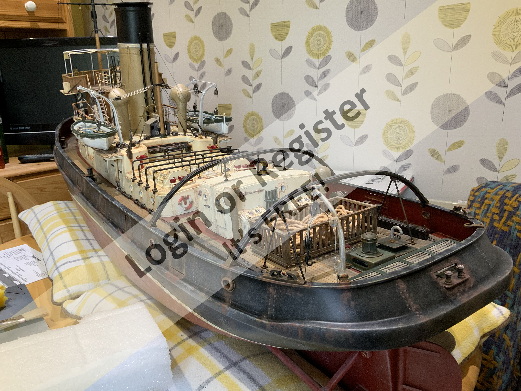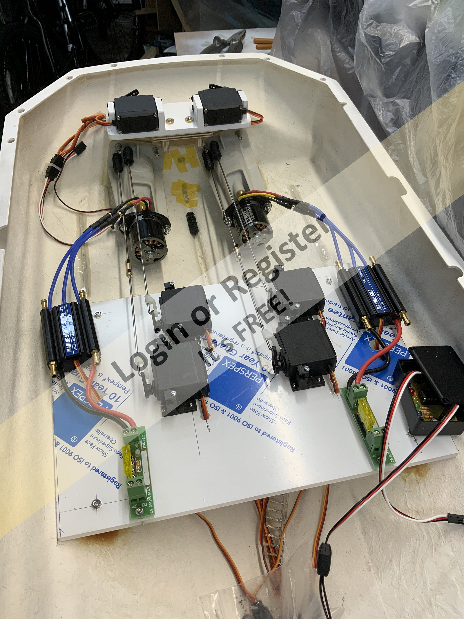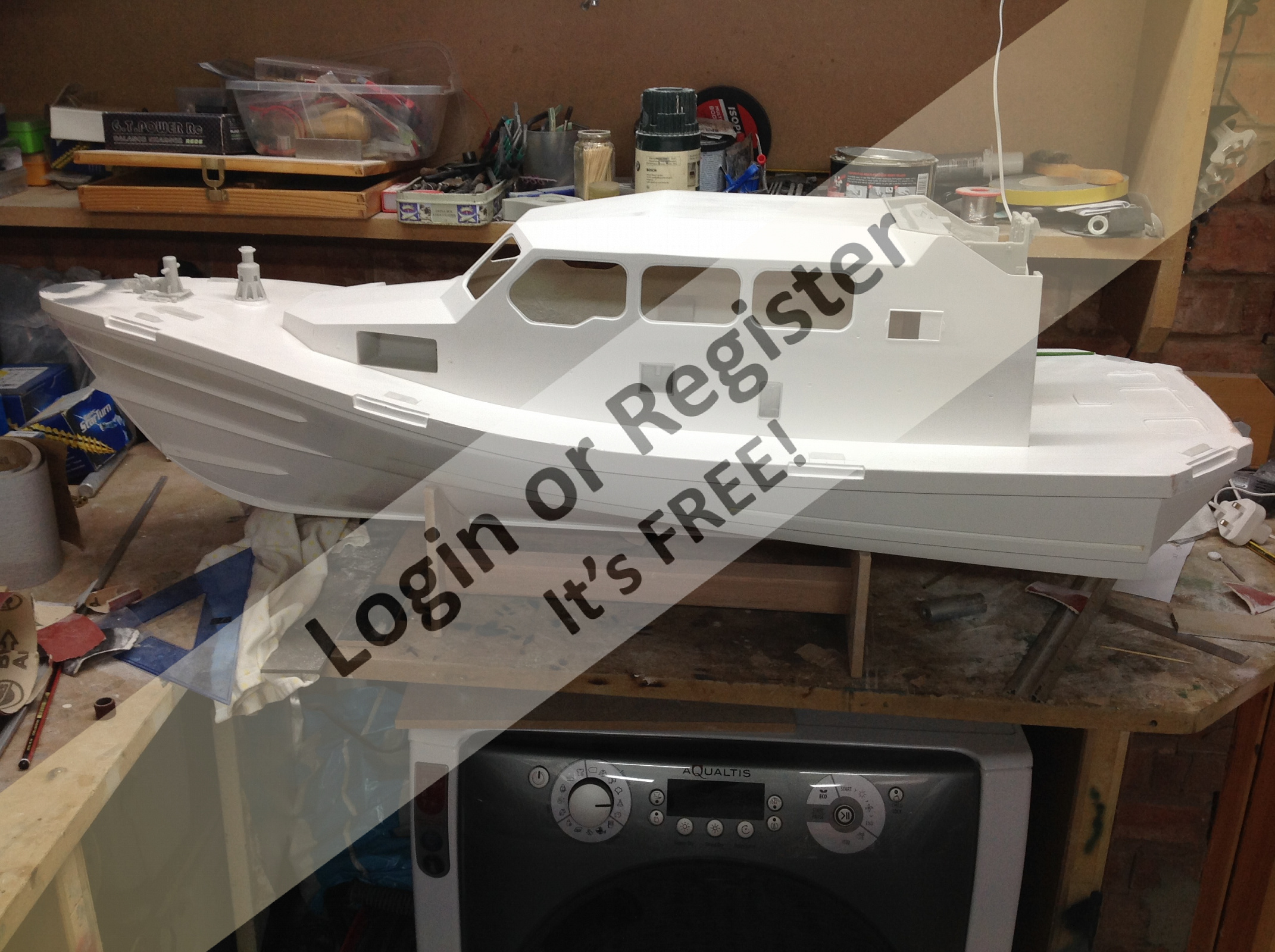 Scratch built, fibreglass hull, ply superstructure. Refurbished last year new brushless gear.