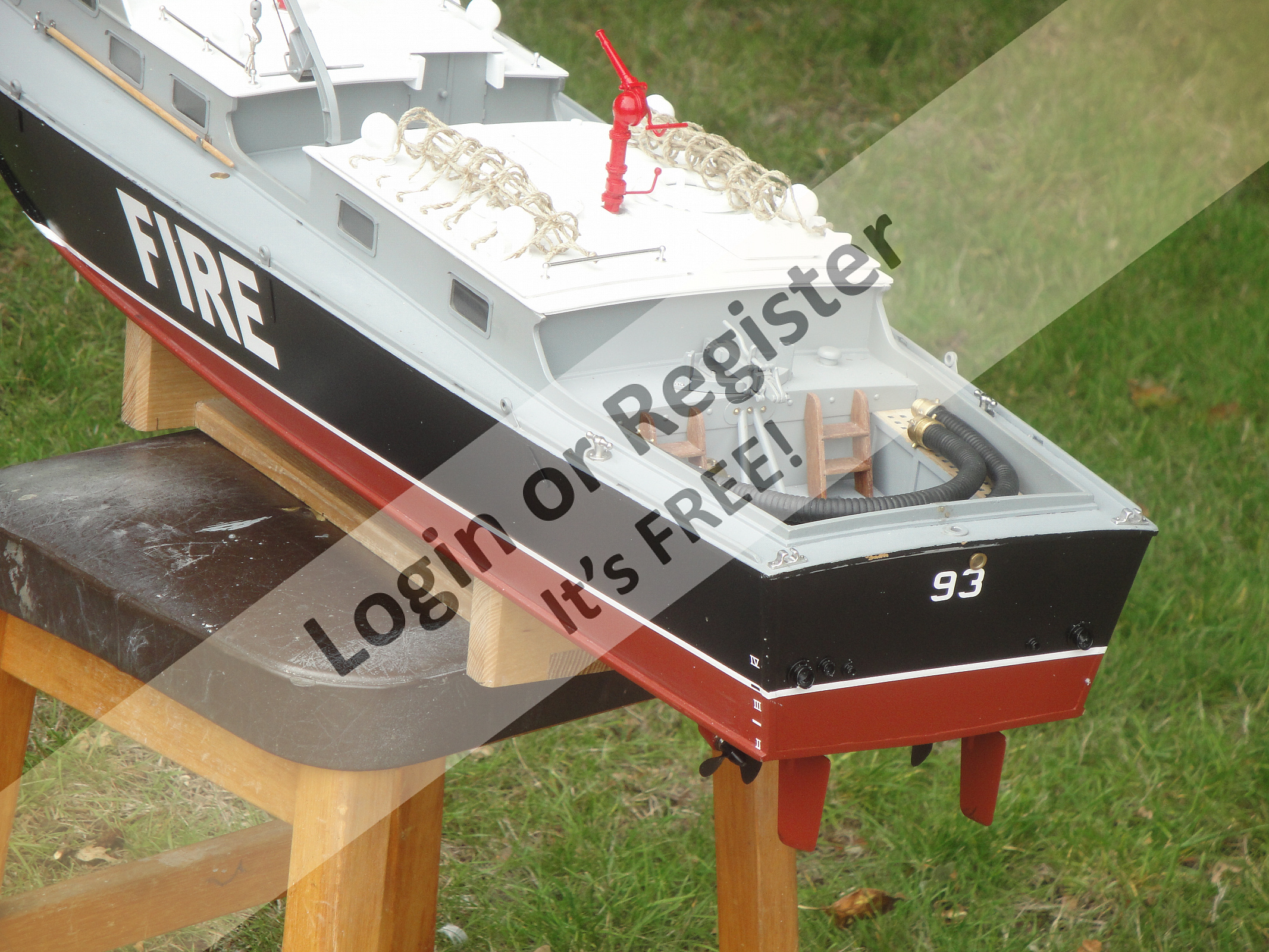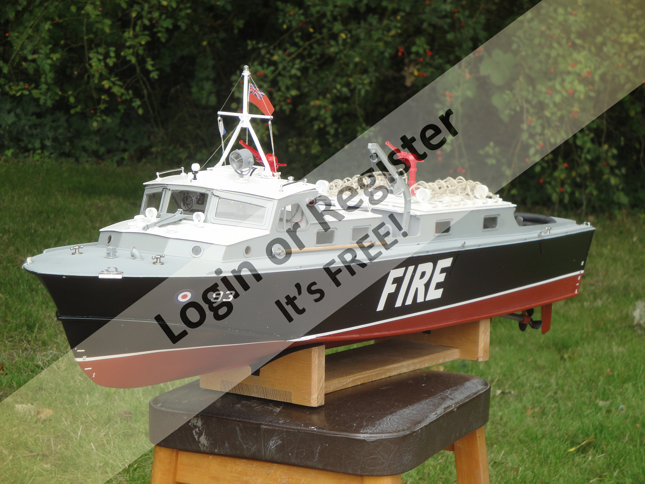 I think you'll find that those photos are not of Pounds Yard, but of Vospers Yard at Portchester where the tenders were built. Indeed the pictures are of 93 having been recently built and in 'original' condition. Compare it with the photo I have attached that is of the tender undergoing sea trials with a Vosper (?) civilian crew, the long nozzle monitors, a Red Ensign (Military vessels prior to acceptance) and Flag Alpha - ship undergoing trials. The other photo is of Vospers Portchester Yard. You can see the jetty where the tender was berthed for the photos