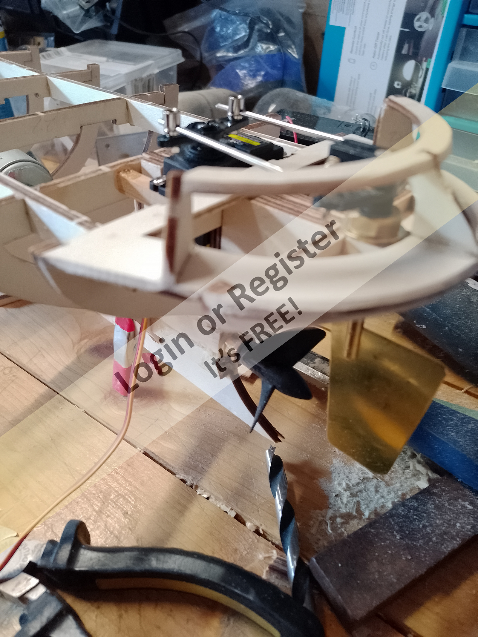 1. The prop, rudder, linkages, motor, receiver, Esc all have to be positioned before any planking/topside stuff.