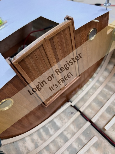 The decking wasn't nibbed as I told myself this was a working tug, not a yacht. Using poplar for the planks provided a good base for painting which I had intended to do, but after scraping and sanding thought what could go wrong with staining? Intending to paint it anyway, if the stain didn't work nothing was lost.