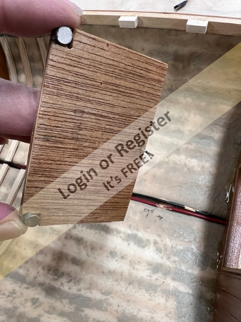 Laying the deck on this build was a little out of the ordinary. I had incorporated a false deck to stiffen everything and minimize the chances of introducing a twist to the hull while the planking went on. Even with the deck and the shear strakes installed I was constantly checking the trueness until there were five or six strakes on both sides. Even then I'd check occasionally just to be sure.