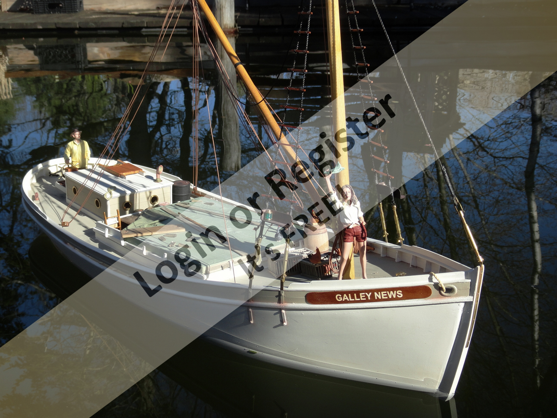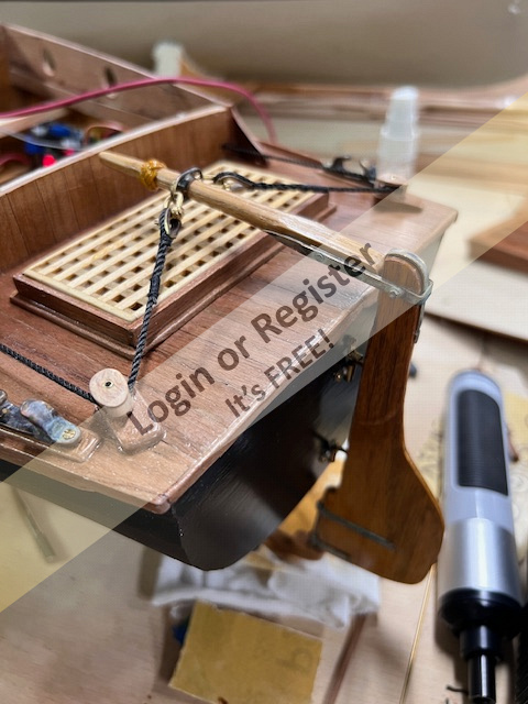 This build is 1:18 scale and represents a boat about 86 feet. Reverse stem, tumblehome counter, timber (barge) fenders, and a few extra's here and there. She's 55" long, 48-50 pounds ballasted, electric 2:1 reduction belt drive, to a 4 1/2" four blade wheel.