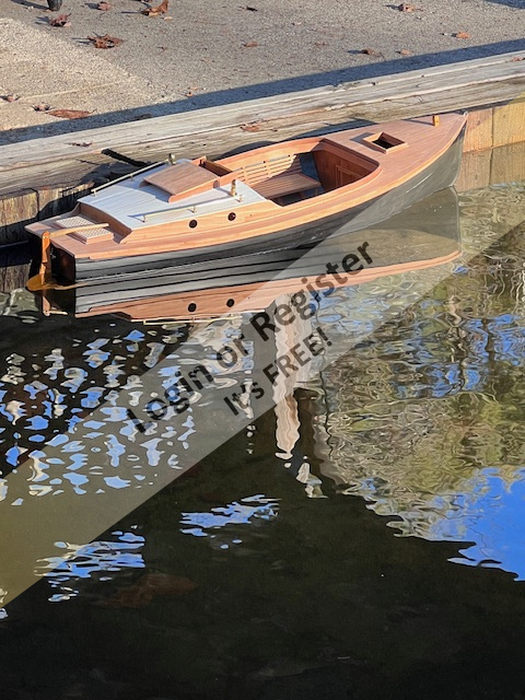 A while ago I was idly thumbing through a book with page after page of study plans and blew by a launch-type hull that was carvel planked. A couple of days later the plan resurfaced in my mind's eye and I looked it up again and thought the 'glass hull in a 1:8 scale would be close enough to loosely emulate these lines. The inspiration drawings were drawn by a fellow named Nelson Zimmer out of the greater Detroit MI area. My apologies to Mr. Zimmer as I've taken some subtle liberties with his drawing, all the while keeping the basic profile of his design. His title for the boat was "Utility Launch" at 23'3" and the hull I have is 35". Close enough for my purposes.
