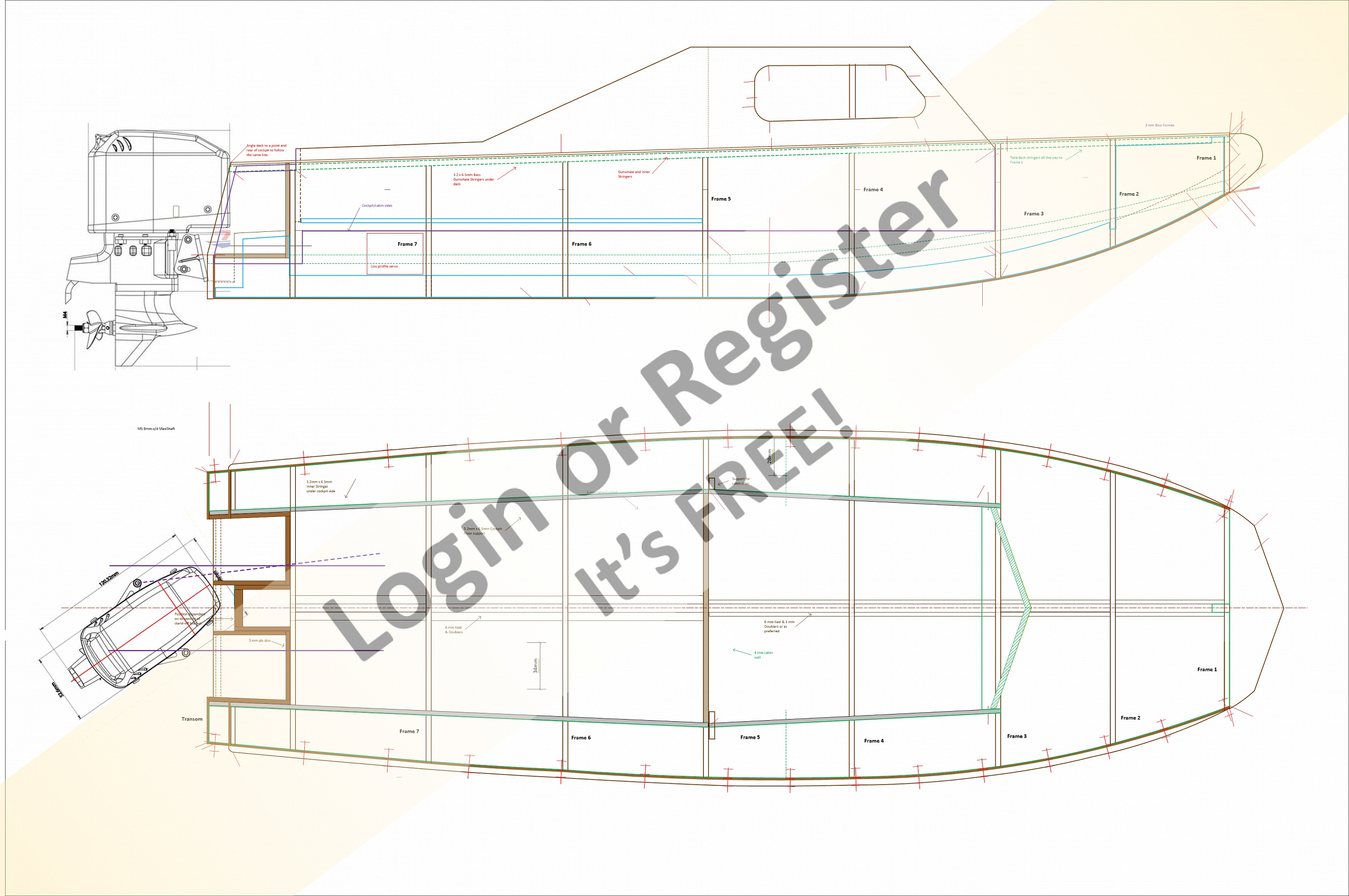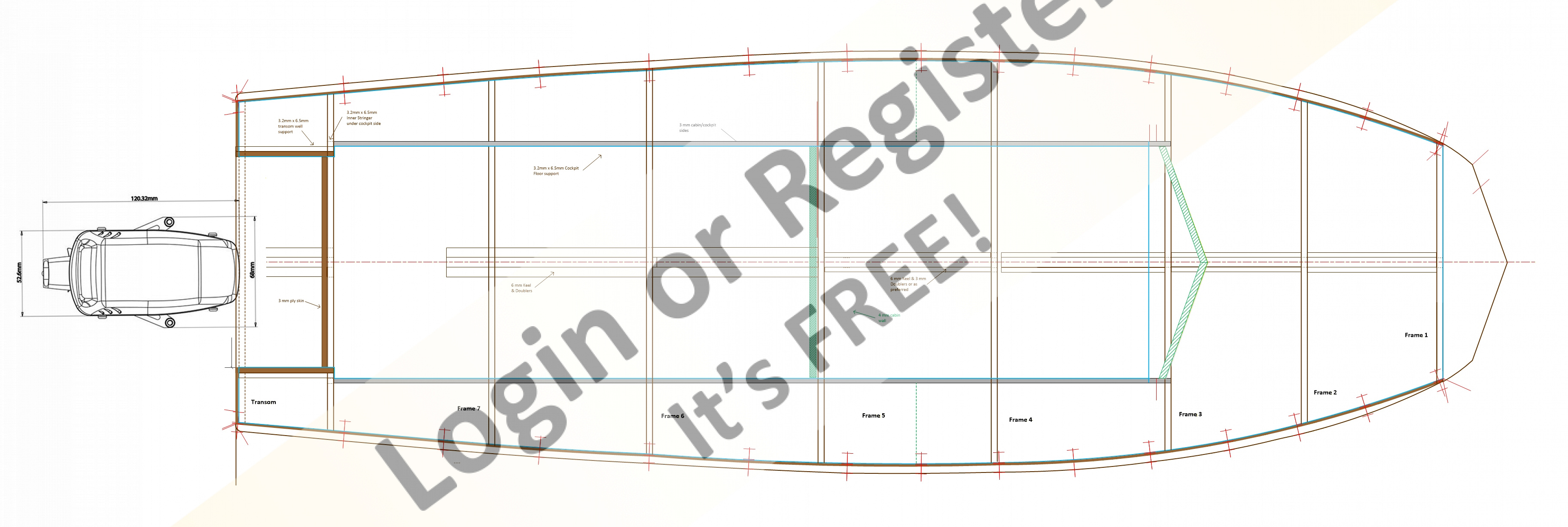 Bit busy, as it's got my construction lines on it, but here are the plan and side view. The keel, frames and cabin/cockpit sides are drawn up so all ready to go.