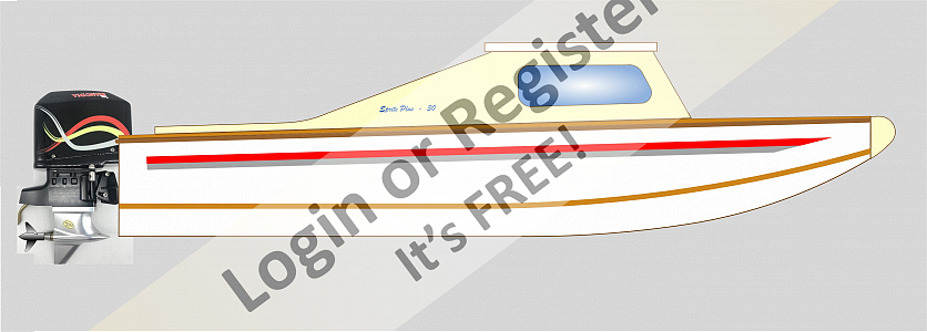 But I'm now in a bit of a quandary! I've drawn up a version of the Sprite Plus suitable for an outboard and at 30" that's around the ideal size I wanted and the size of the motor looks OK. But I was also thinking I fancied something with a more traditional and sleeker look and already having drawings produced for a Fisherman, again based on the Rapier hull, so I've modified those and called it Sports Fisherman. Not only for the outboard but I've also increased the size of the top part of the superstructure in height and length to balance the size of the outboard, I think it just about looks alright. But this a bit bigger at 35" over the Sprite Plus's 30".