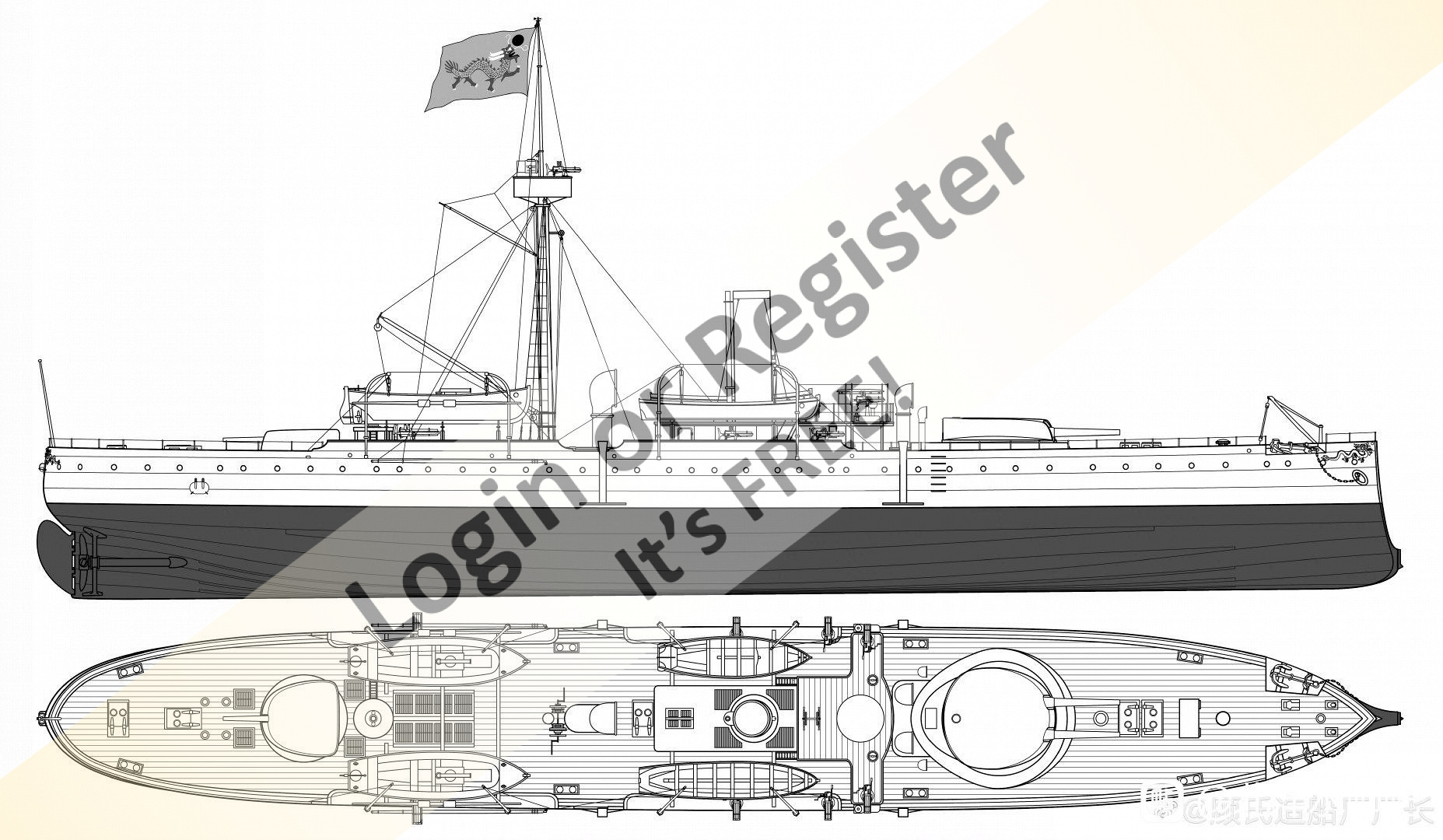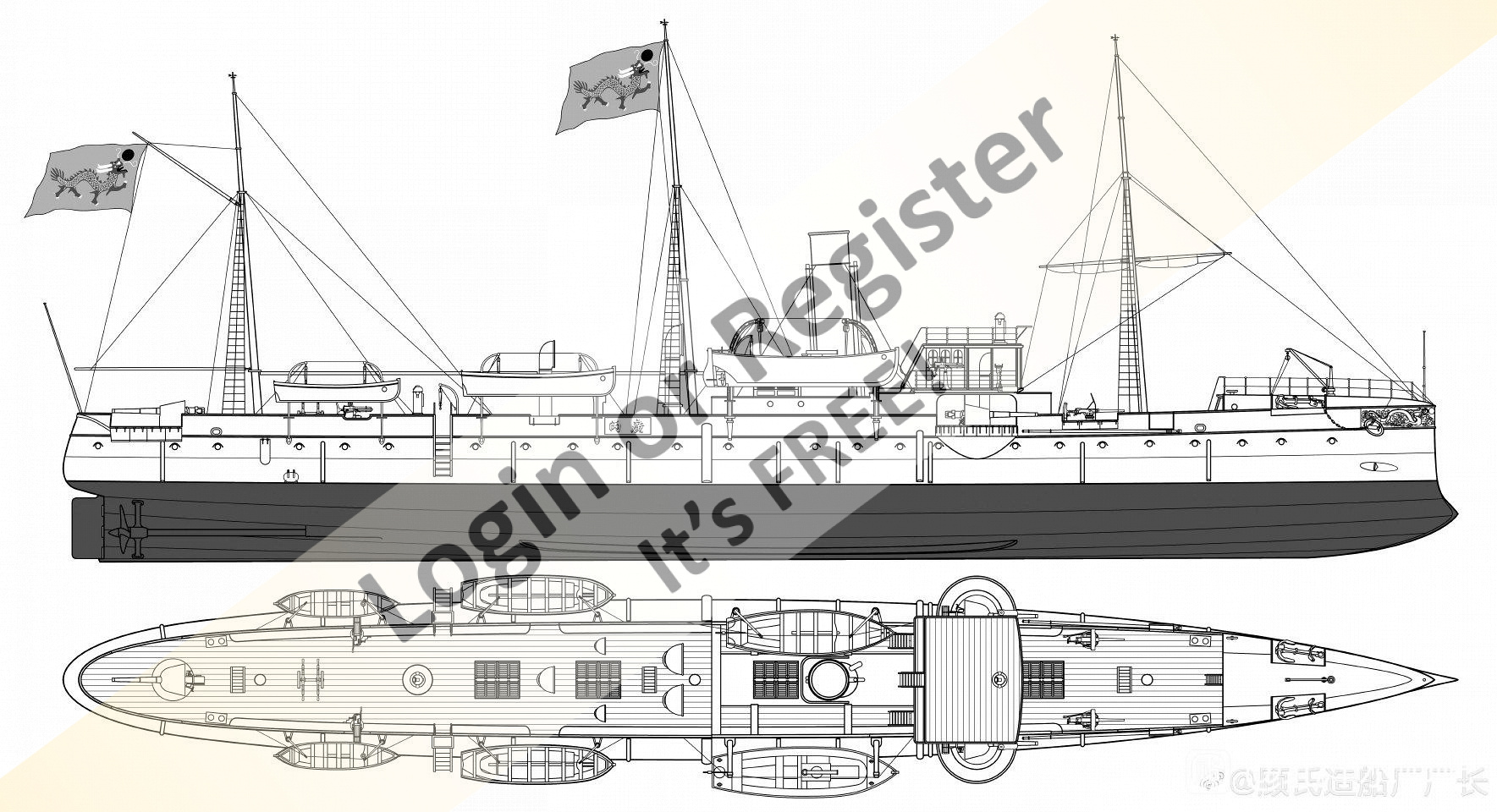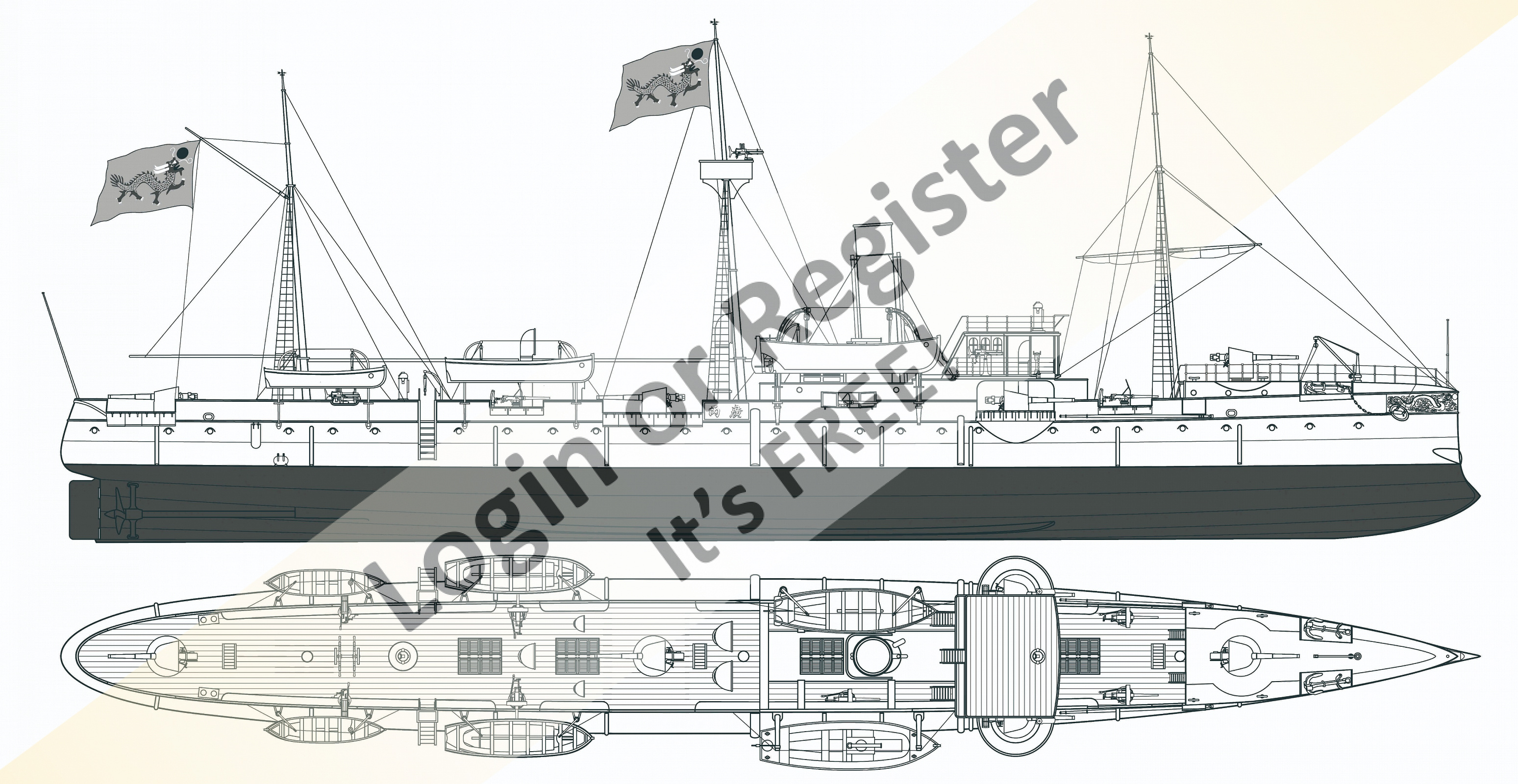 Jiyuan (Chi Yuan) & Guangyi, were protected cruisers built in Germany by AG Vulcan Stettin for the Qing Dynasty. Drawings shown are of Jiyuan & both original and late versions of Guang Yi.