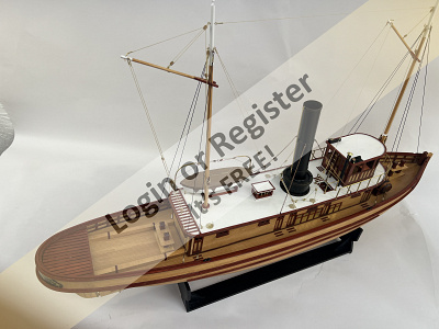 This model represents a small fireboat equipped with twin monitors, a type of vessel historically stationed in nearly every major working harbor throughout the United States and abroad. Its configuration is based on a combination of plans and photographic references from several representative examples. Because of this, it serves as an accurate portrayal of the smaller fireboatsโmany of which are still in service in various ports today.
