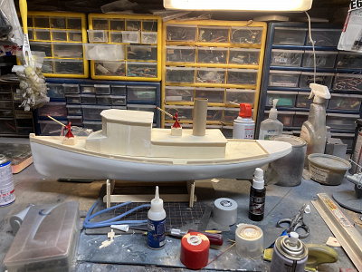 I purchased this kit for myself for Fathers Day this past June. This is actually my first commercial kit to construct, as all others in my harbor were scratch built. Since retiring my Beaver Tug boat some time ago, actually, it got sent to the scrap heap, my harbor has been looking for a replacement. At 24" long, this fits well with the other models I have made. Also, my Admiral (wife) won't allow anything larger.