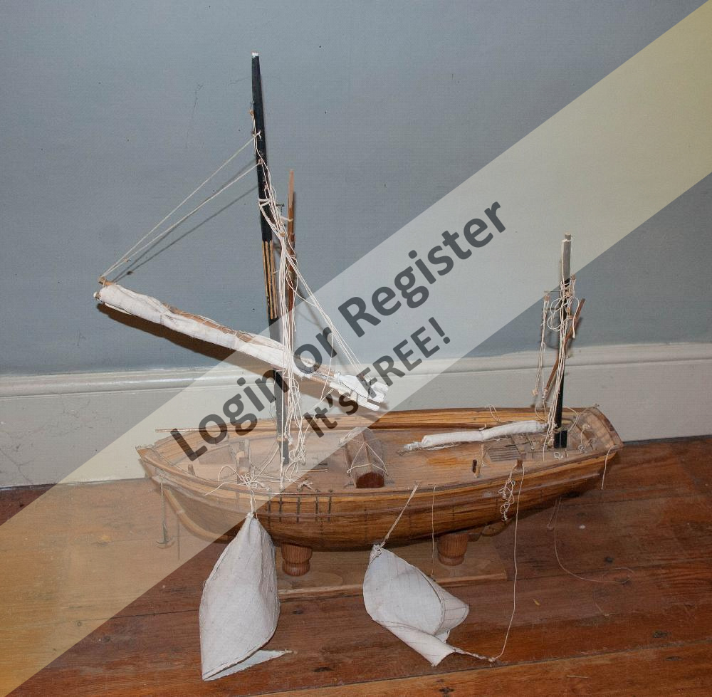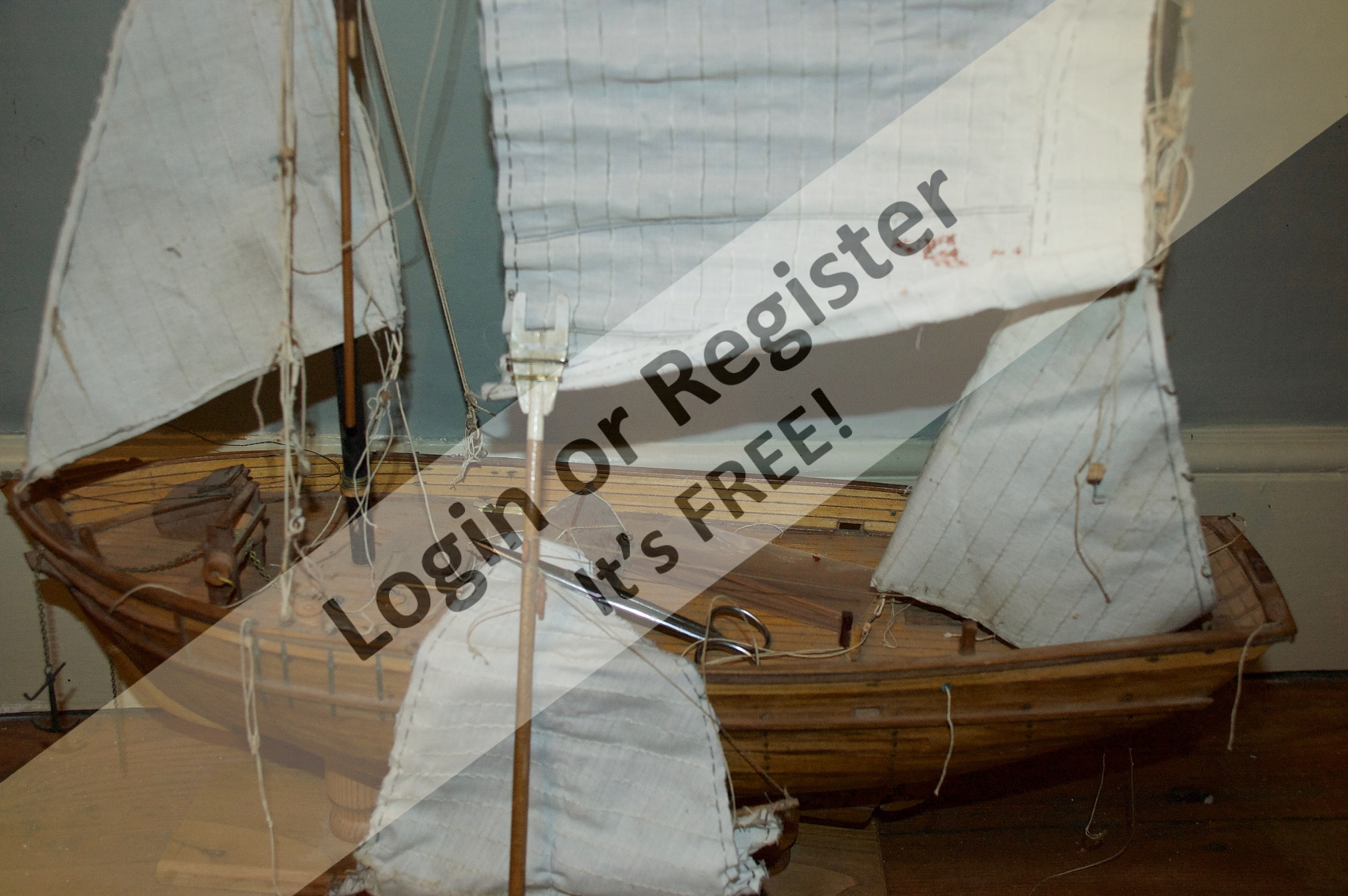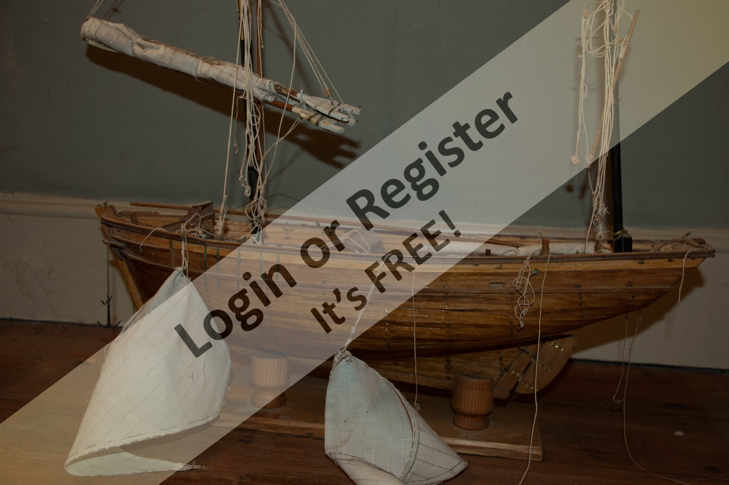 My challenge is to re-rig her. She must have been hit by a tsunami! - the rigging is in a terrible state. Though, her beautifully stitched four sails are, with exception of a small red stain on the main- are like the fittings, in very good nick. I have only ever restored a glider and model Thames barge so by comparison this has become the challenge of a lifetime. Members please give me some tips.
