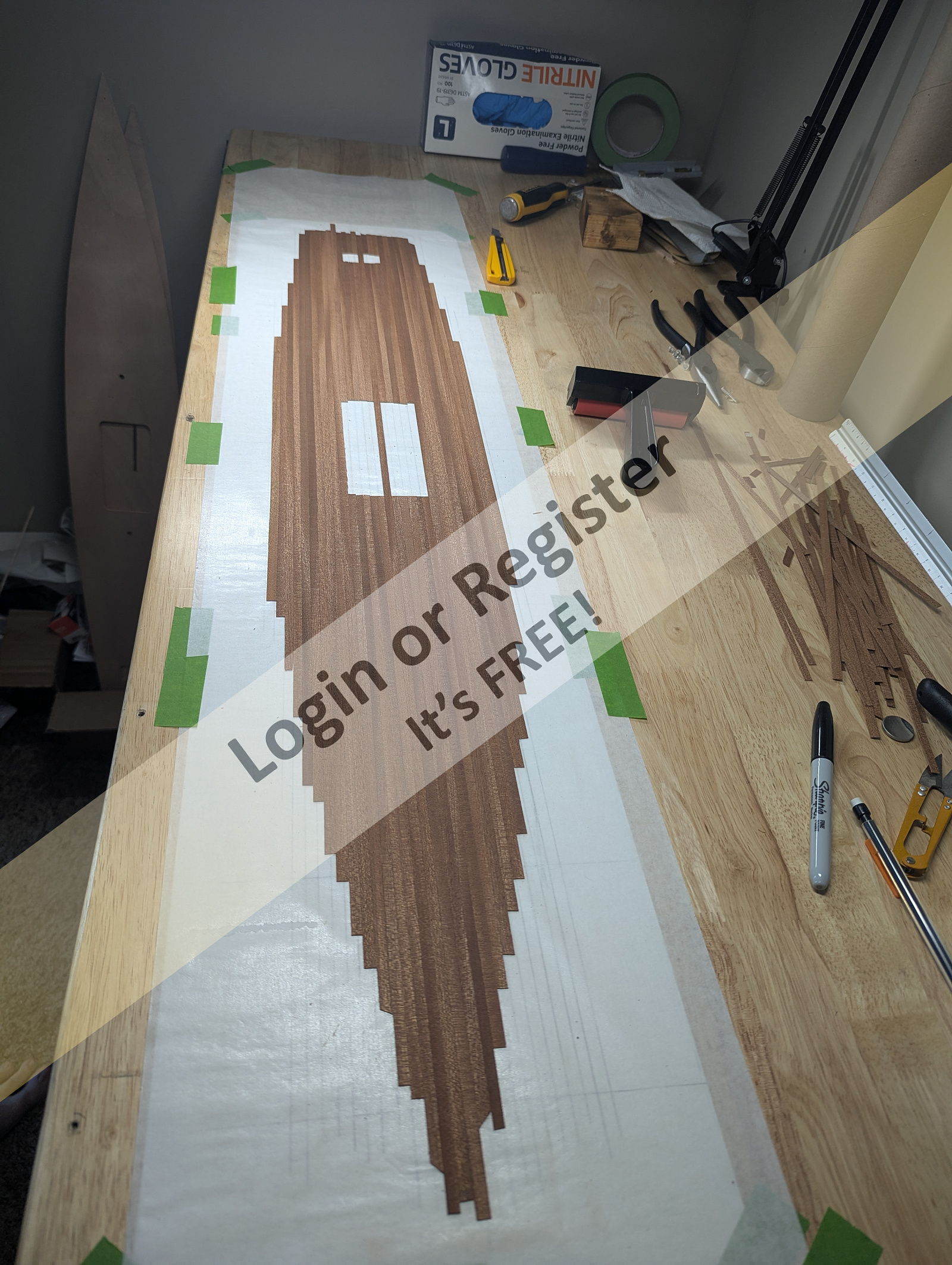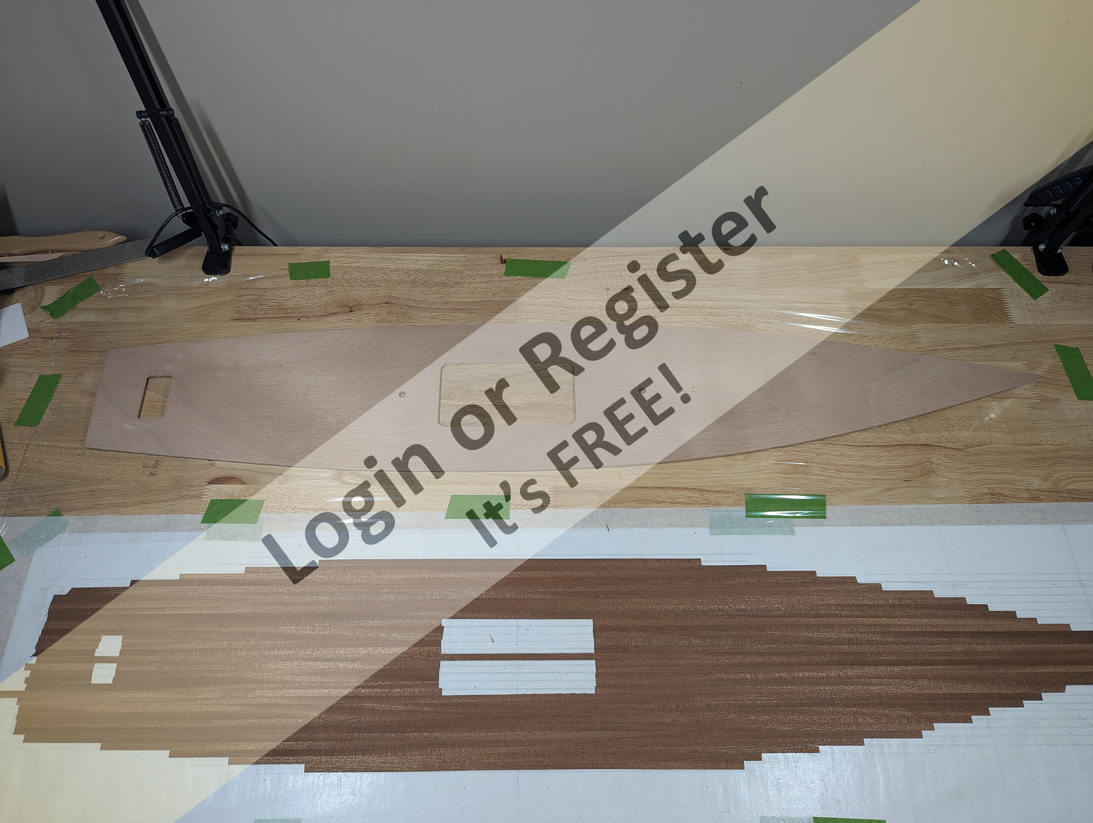 I also taped around the edge of the sides where the deck meets in preparation for epoxying the veneer strips around the edges.