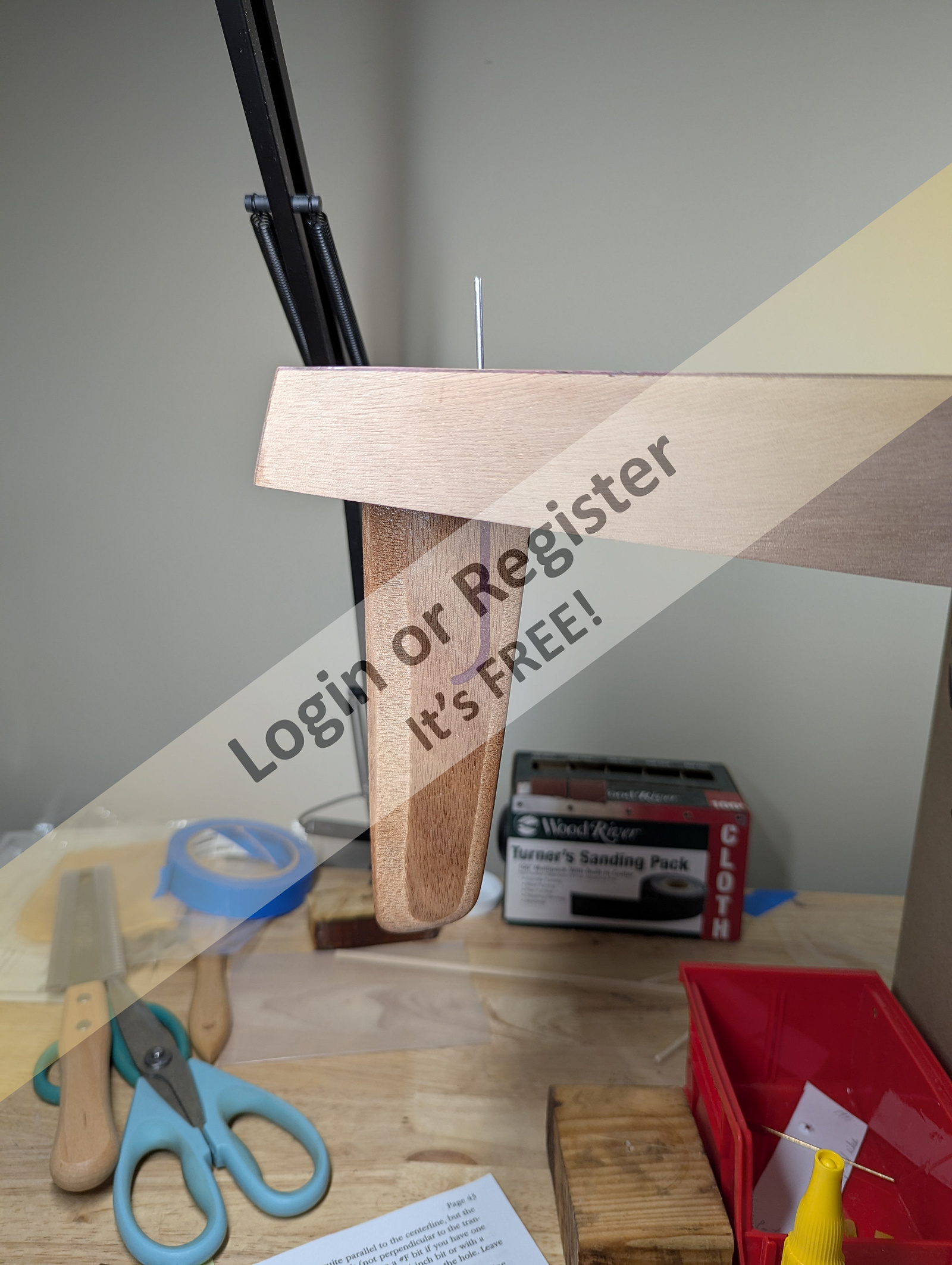 I started with the rudder post. I used a spare piece of plywood to make a holder for the rudder shaft while I epoxied in the rudder shaft. The shaft is a carbon fiber tube with a rubber gasket to help waterproof. Just like with the keel, I made sure the boat was level on my workbench before starting. I also waxed the rudder shaft so it hopefully won't stick if any epoxy gets on it. Using both the makeshift plumb bob and the keel, I lined up the rudder so it was perfectly in line with the keel and then epoxied it into place.