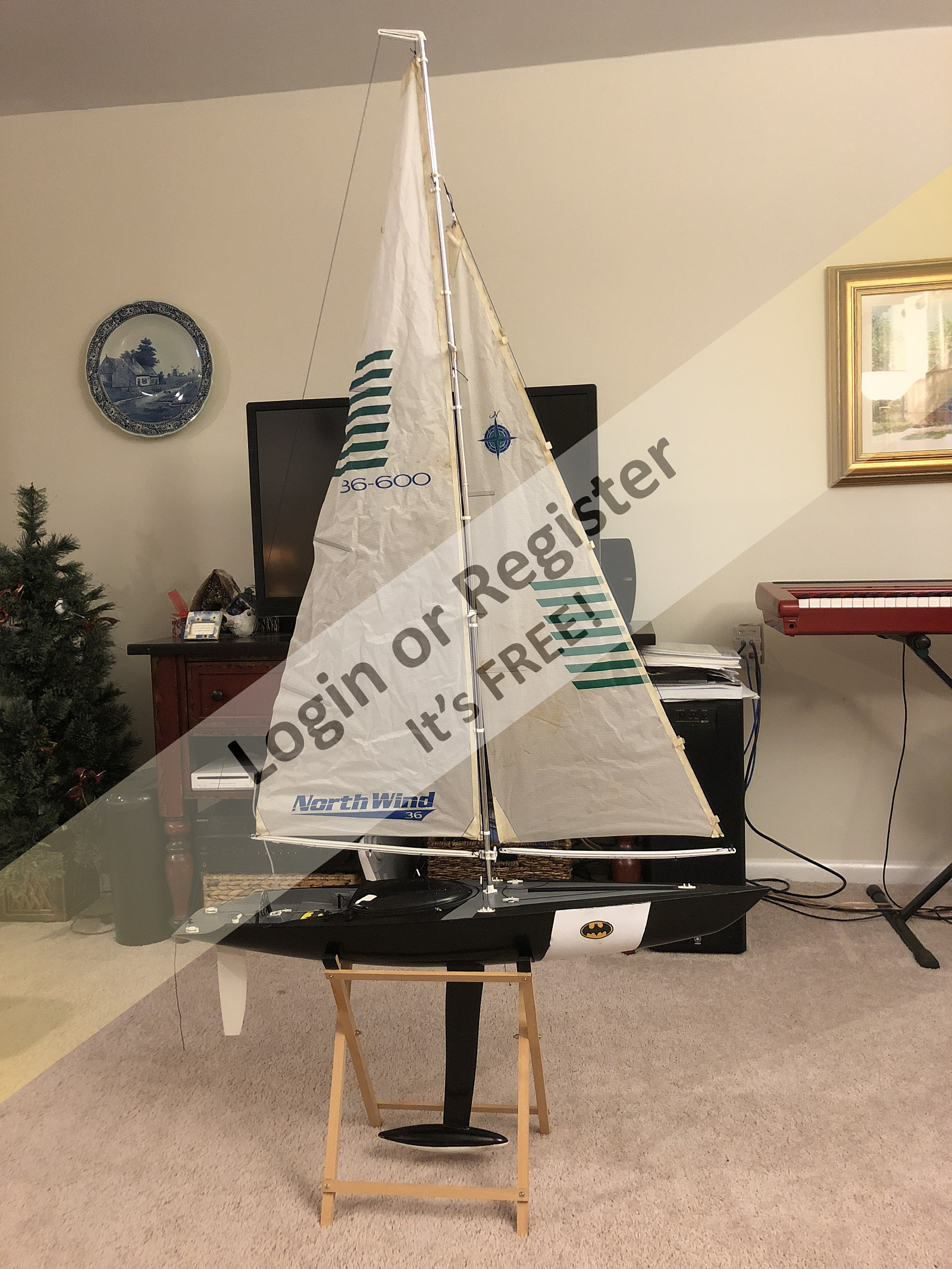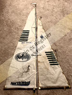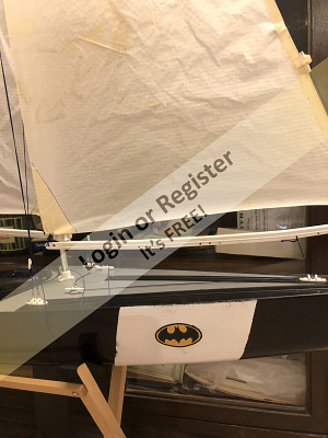The sails need a little repair and Singers fabric glue really worked well. Still have fittings to add to main boom, but you get the idea. Thinking about how the plans rig the sheets. Will try it their way first, but looks like the servo is at a mechanical disadvantage. Plans say max wind is 10 mph! Thatโs way too low.