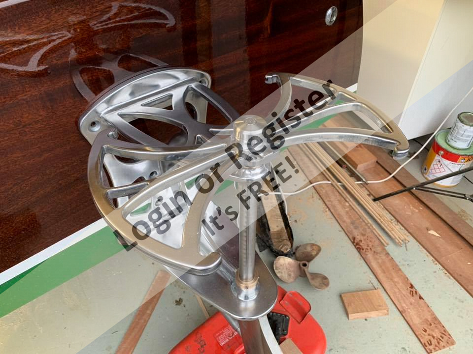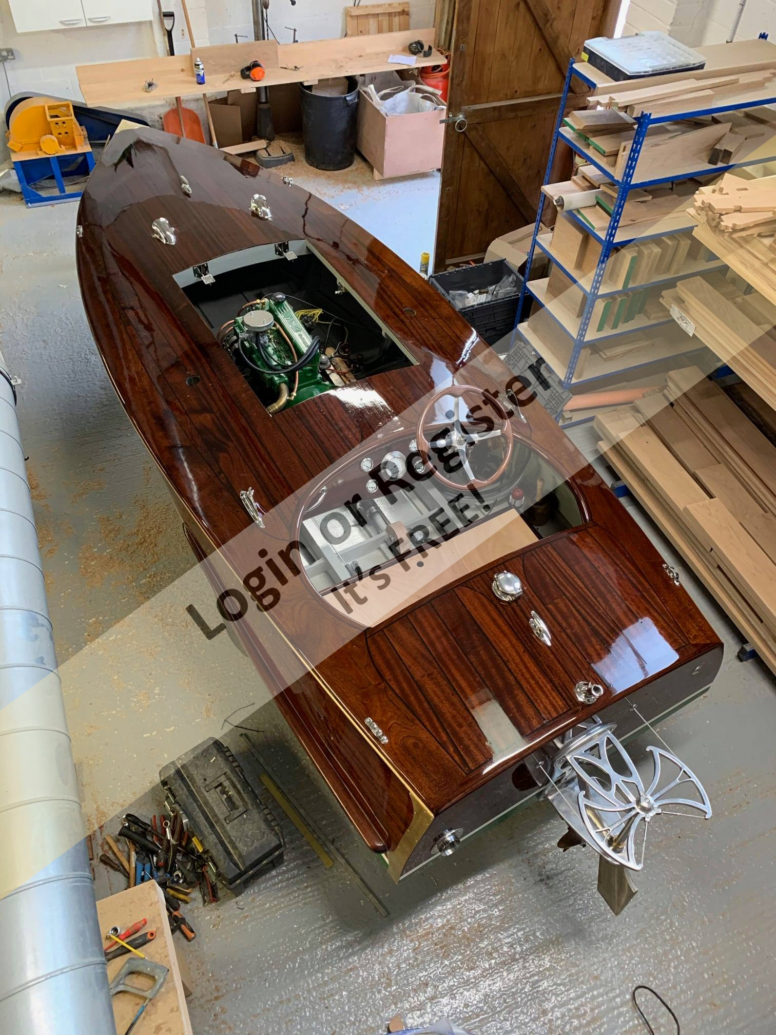 The boat is built on frames, covered with mahogany and maple strips. The mahogany strips are fixed to the frames with over 2,000 brass pins.