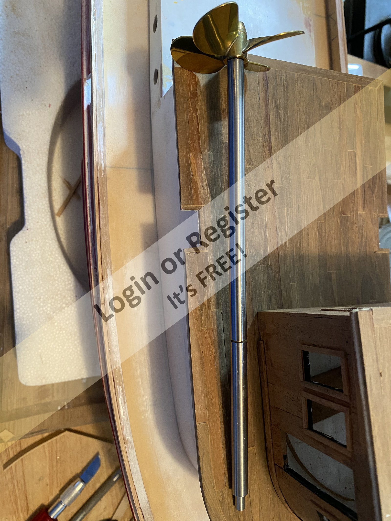 When building the models I try to make the prop shaft diameter to scale with the original ship if possible.The groove you see in the shaft is the location of clip ring in its previous life in the outboard motor.