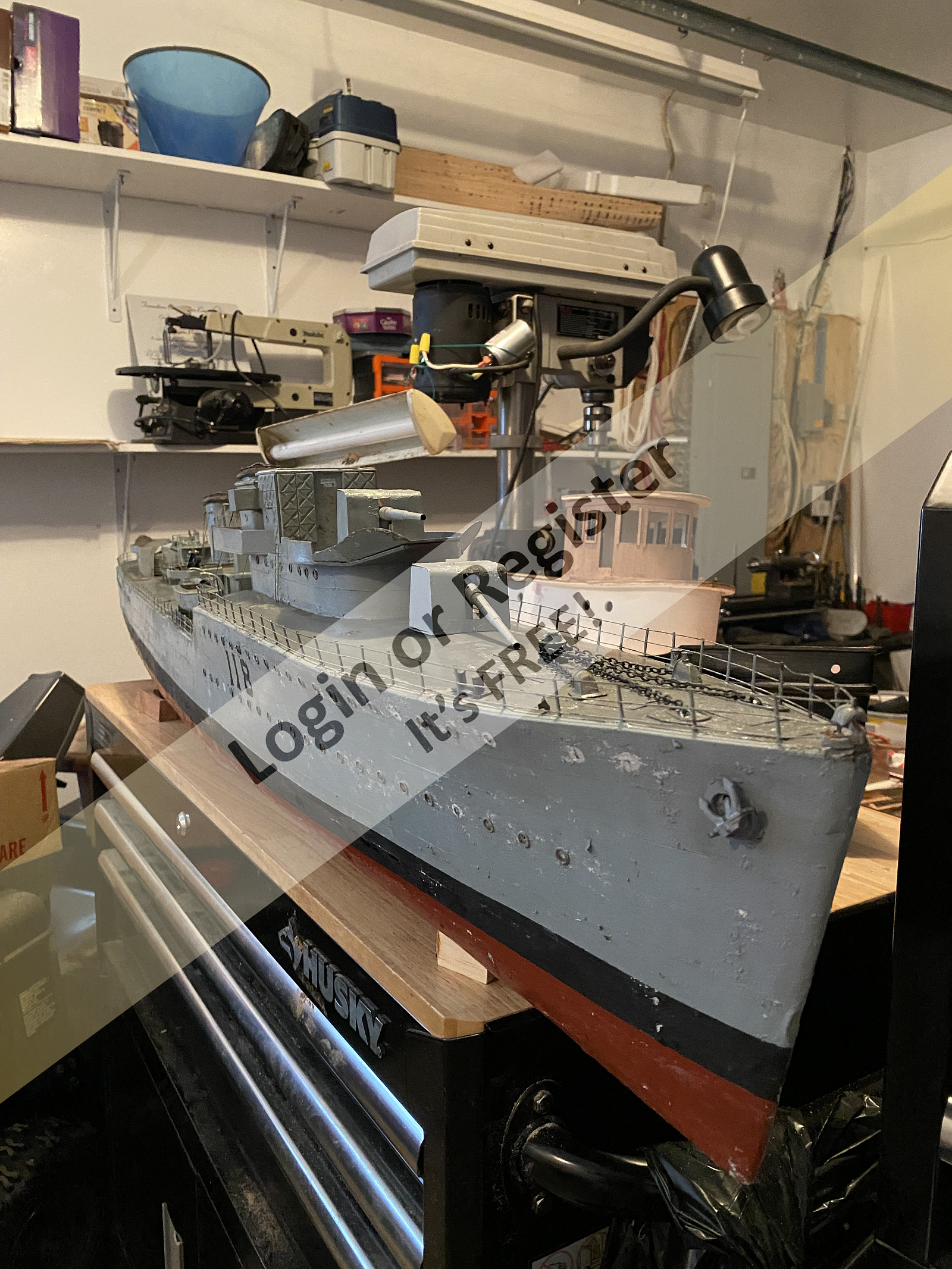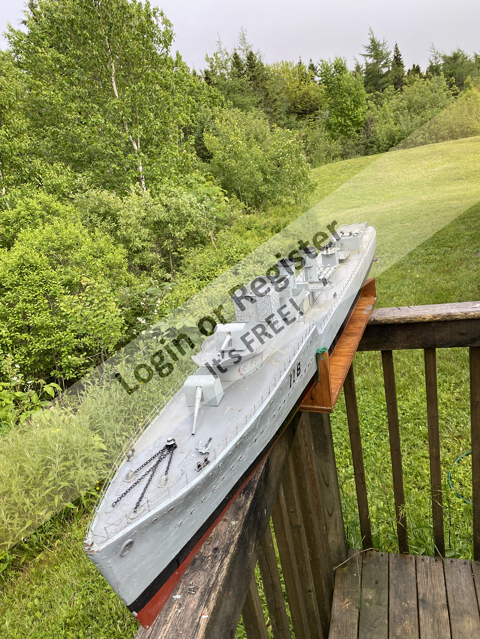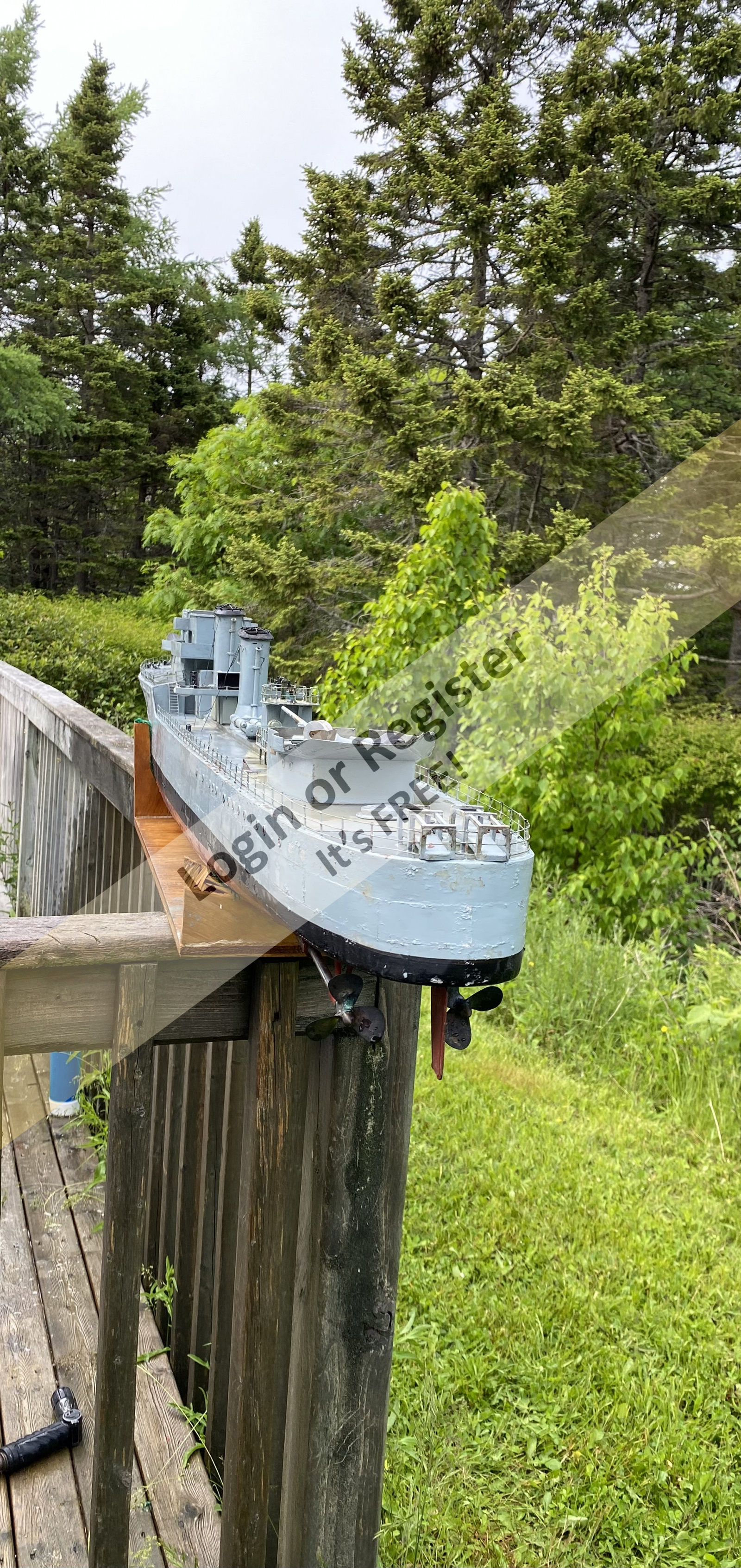 Hello everyone, today I acquired a model that I build 35 years ago. HMCS ASSINBOINE. At the time I built the model a friend on my wanted to get in to the hobby so I gave him this model. Well, it was in his barn for 35 years untouched until today. She needs cleaning up , I cleaned much of it today. I plan to clean and salvage what I can then repaint her. She is constructed with 1/32โ plywood veneer over plywood frames. The hull was then fiberglassed and covered with .010โ aluminum plate. The aluminum plating is a little corroded but with a little sanding it should be ok. She is powered by two Dumas 12 volt motors. The drive shafts are 1/4โ stainless steel with one inch props. Iโm very happy to have this model again. Itโs banged up a little and a few parts missing but Iโm looking forward to her refit.