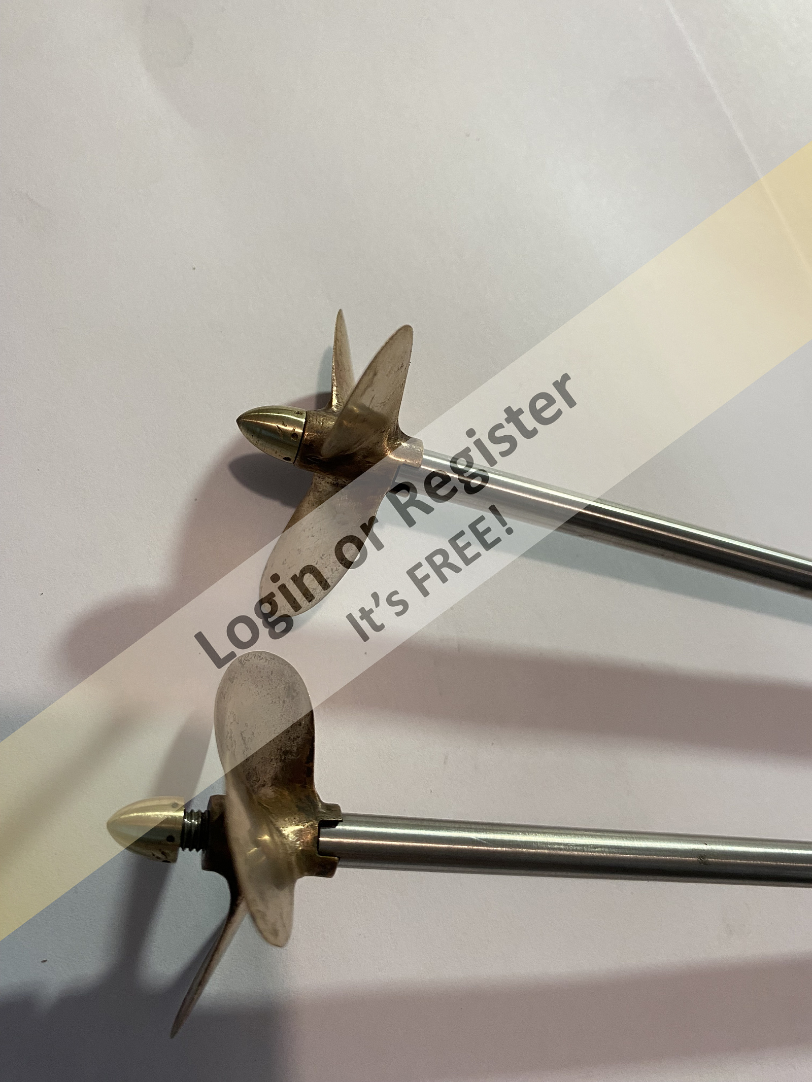Beginning the process of refitting. Will be mostly a cleaning/painting project but will make some additional parts add to the ship. Today I cleaned the tail shafts and propellers/ hubs. The props are 2 inch Dumas props. Rather than use the usual drive dogs I machined flats to fit in the rear slot in the props . Looks much better the way this way in my opinion. I manufactured the cone nuts rather than use the out of scale nuts that are supplied with the props when you buy them. I made these shafts and nuts over thirty years ago.she had been in storage for all of that time.