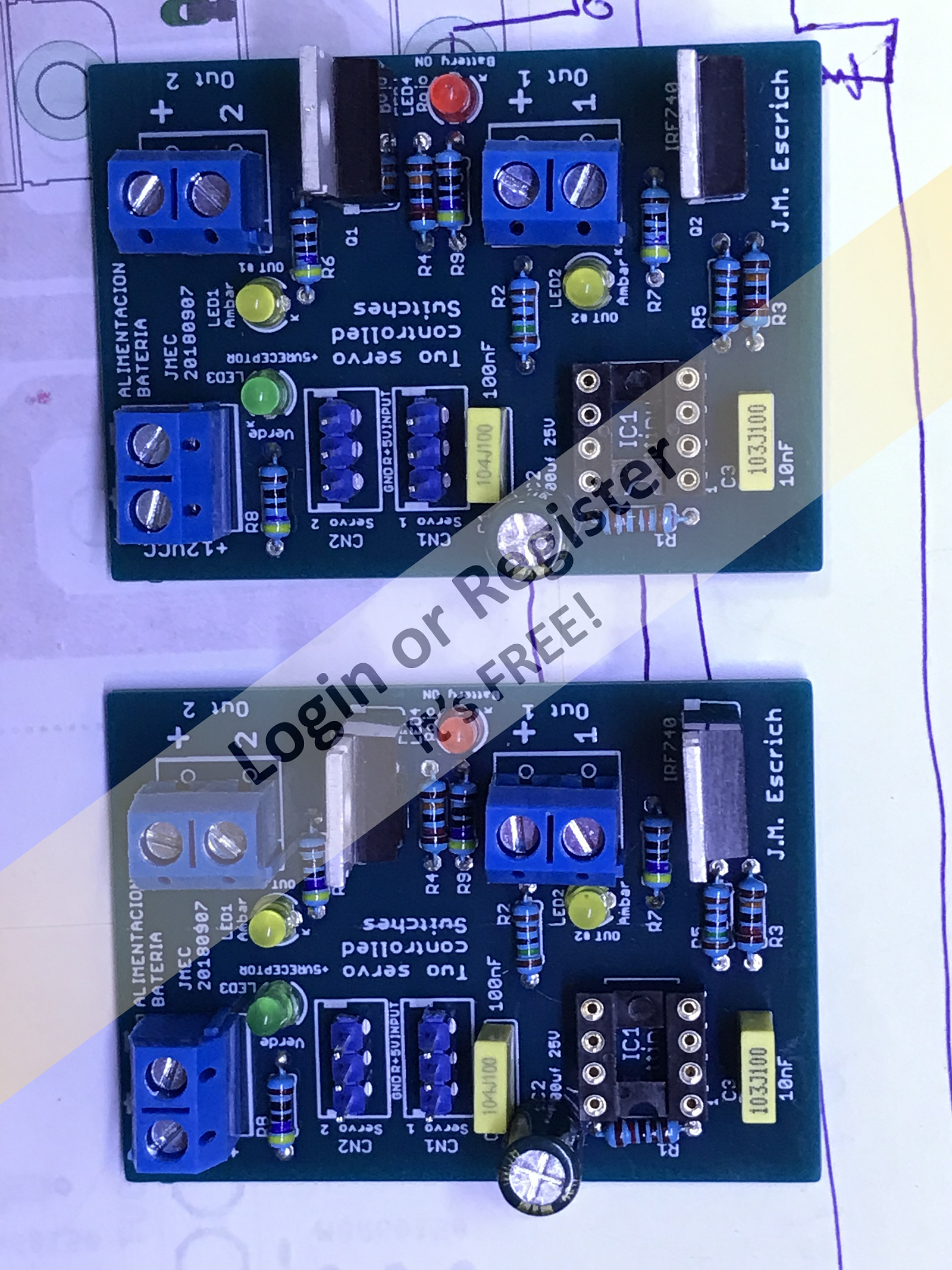 First of all, thanks to every one for every answer, as I was answered to Rookysailor the material from action electronics looks too weak for the use I need, referring the switches I normally make my own radio controlled switches, enclosed I send you two pictures of two of my diferent switches, I have more models, and even this two can work in mutiple programmable ways, but my main problem arises because I knew the horn programmed by Rijsard Malinowsky, and the sound is almost perfect, but, in the same board still work the motor sound, and I need to silent the motor, unfortunately I had no time enough to come inside the program, and change the code for not to have always motor sound, in the meanwhile will be good for me to locate an electronic foghorn, with nice, realistic sound, that's the reason to ask you, because i don't know everything, and all of you toghether know much, much more than me, then thanks again for your valuable answers