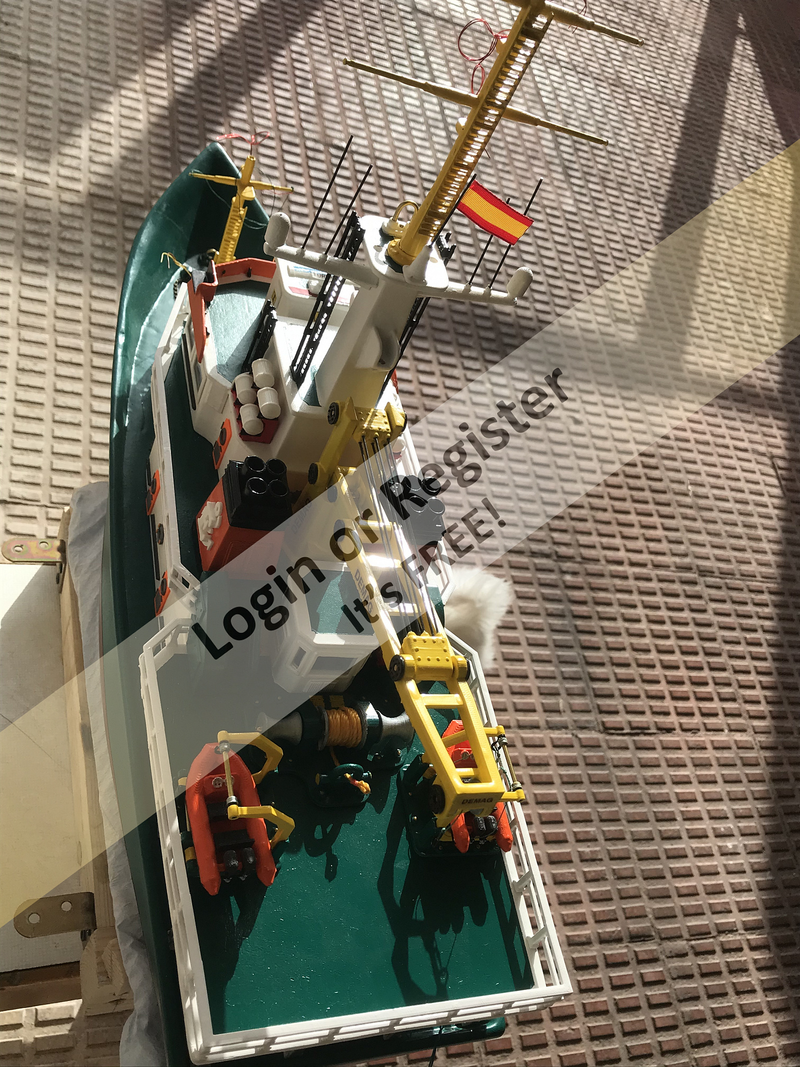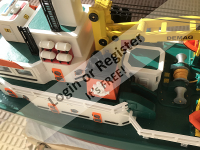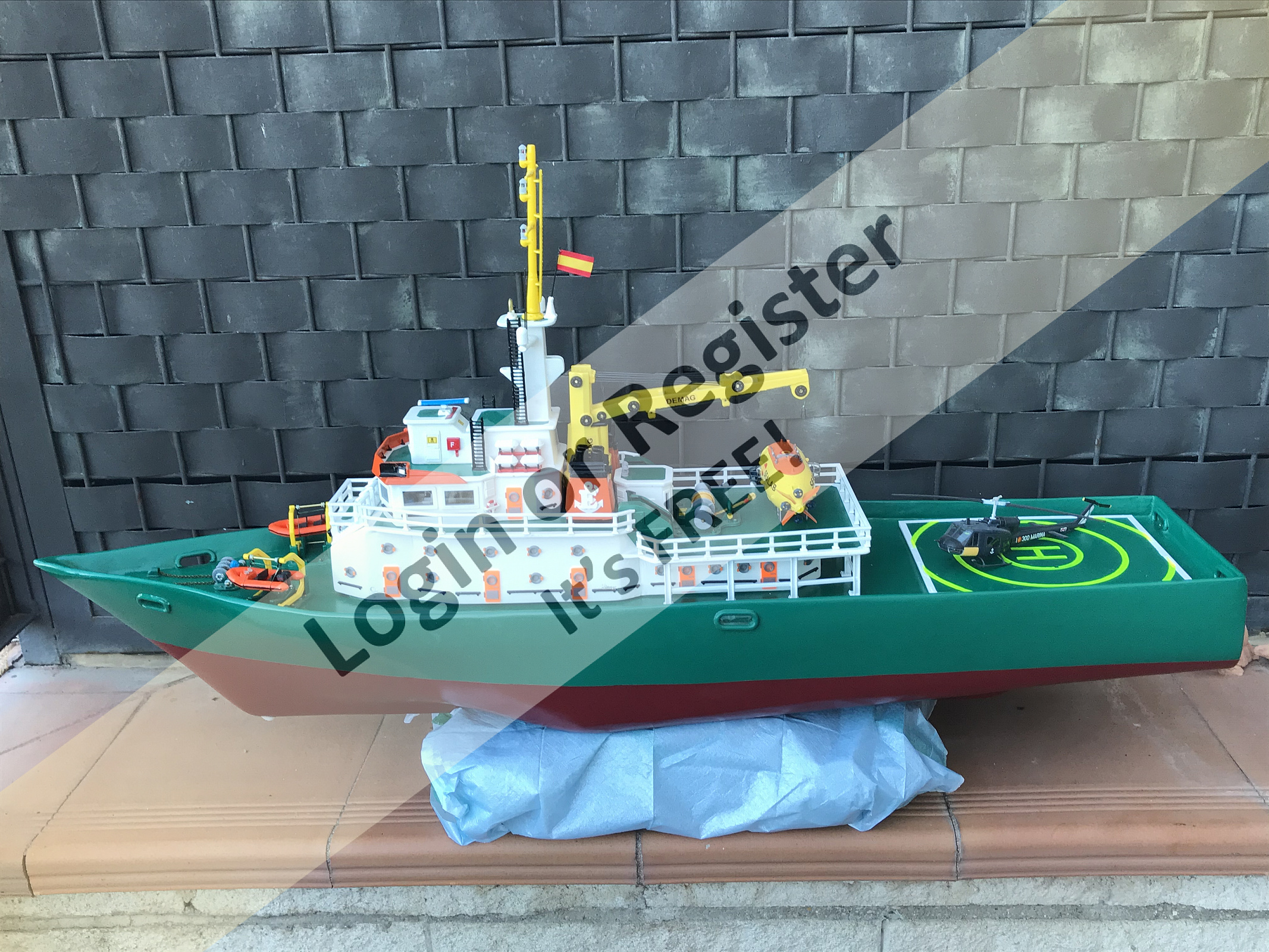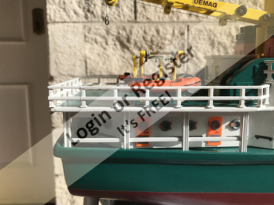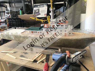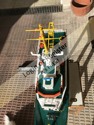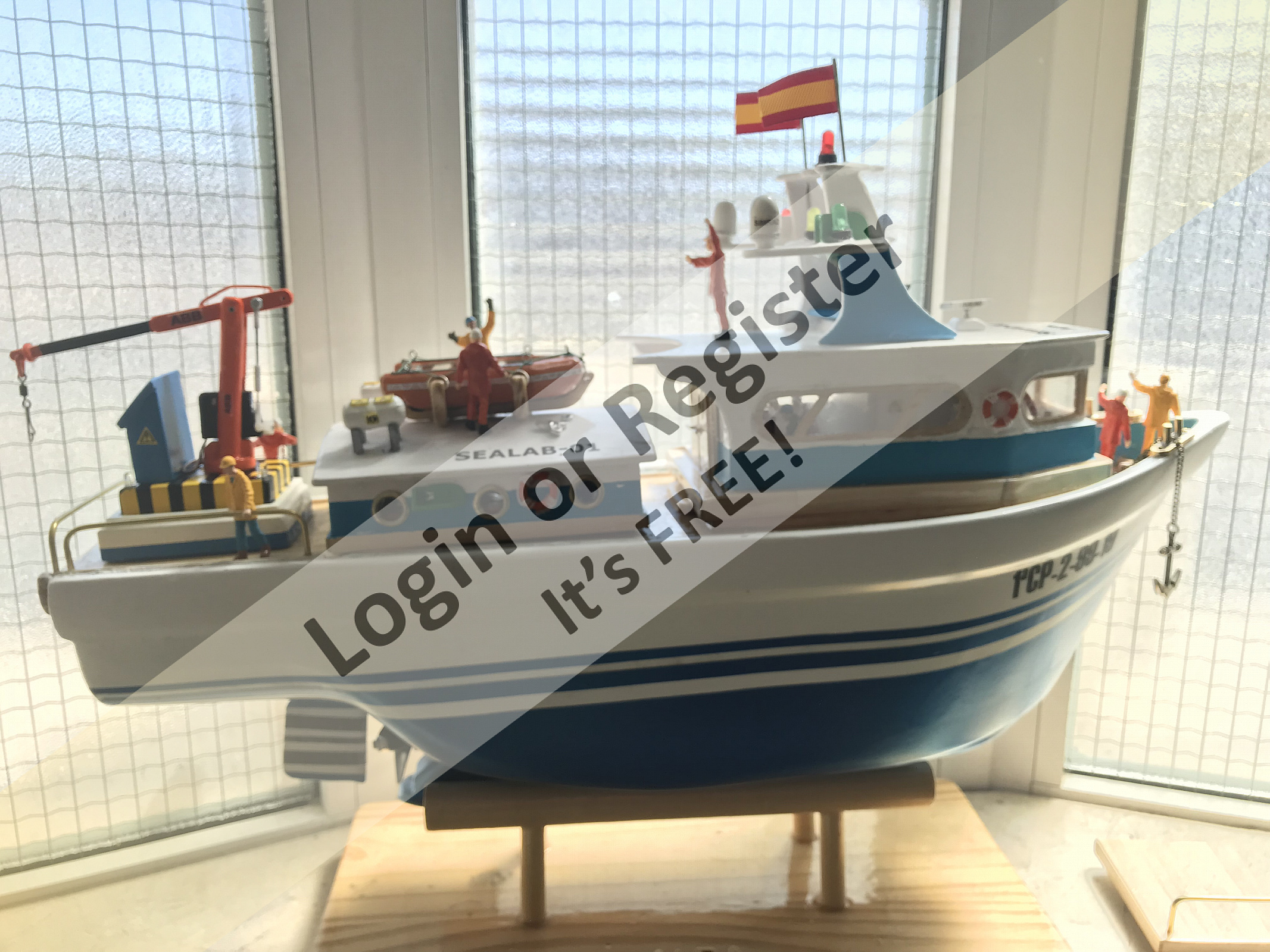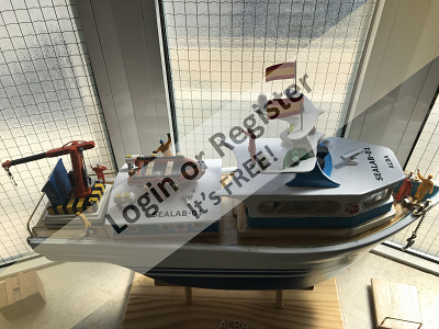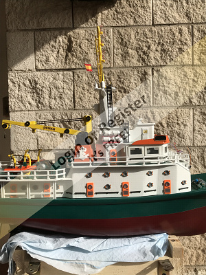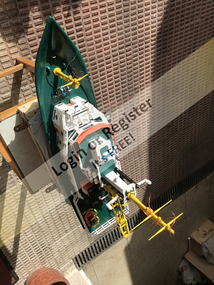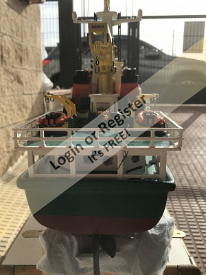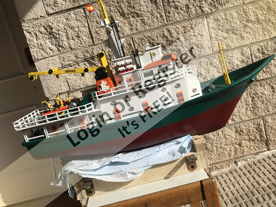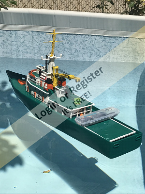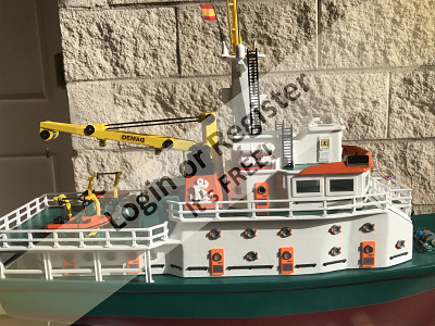 This is a boat completely developed by me, it's not a reproduction of any other vessel, I was designing every parts and adding them to the boat, it's a floating laboratory, in this case the alternate name is Sealab 002, now it's still under construction, once finished will be an RC boat, with a lot of diferent remotelly controlled groups of lights, video camera and video recorder controlled from the transmitter, and also it will have temperature and battery monitoring, confirmation of RC signals, alarm protocol in the case of signal loss, bluetooth or ESPNOW external monitoring of signals and so, by the moment it's the second of a laboratory boats series, the scale is 1/72