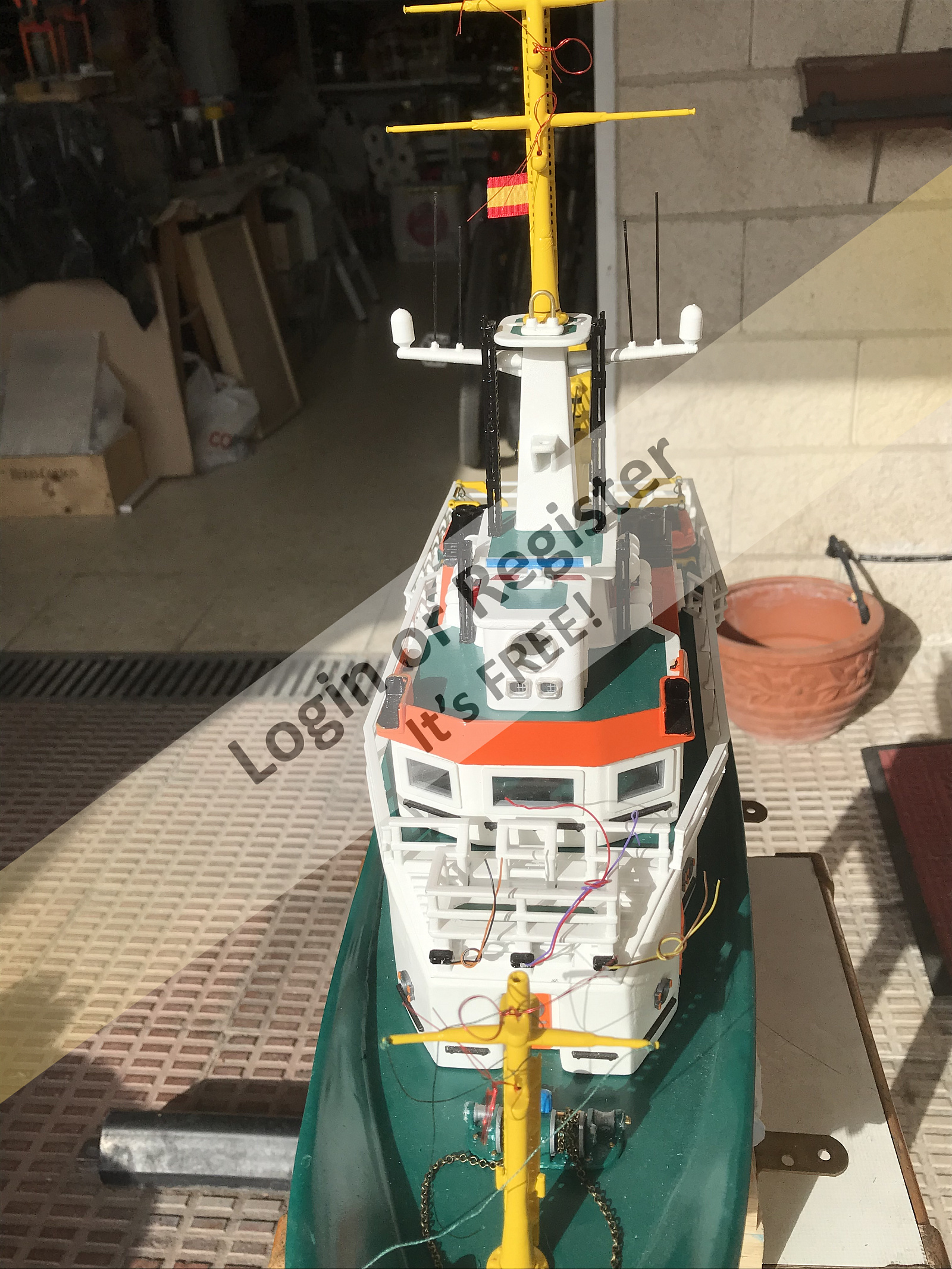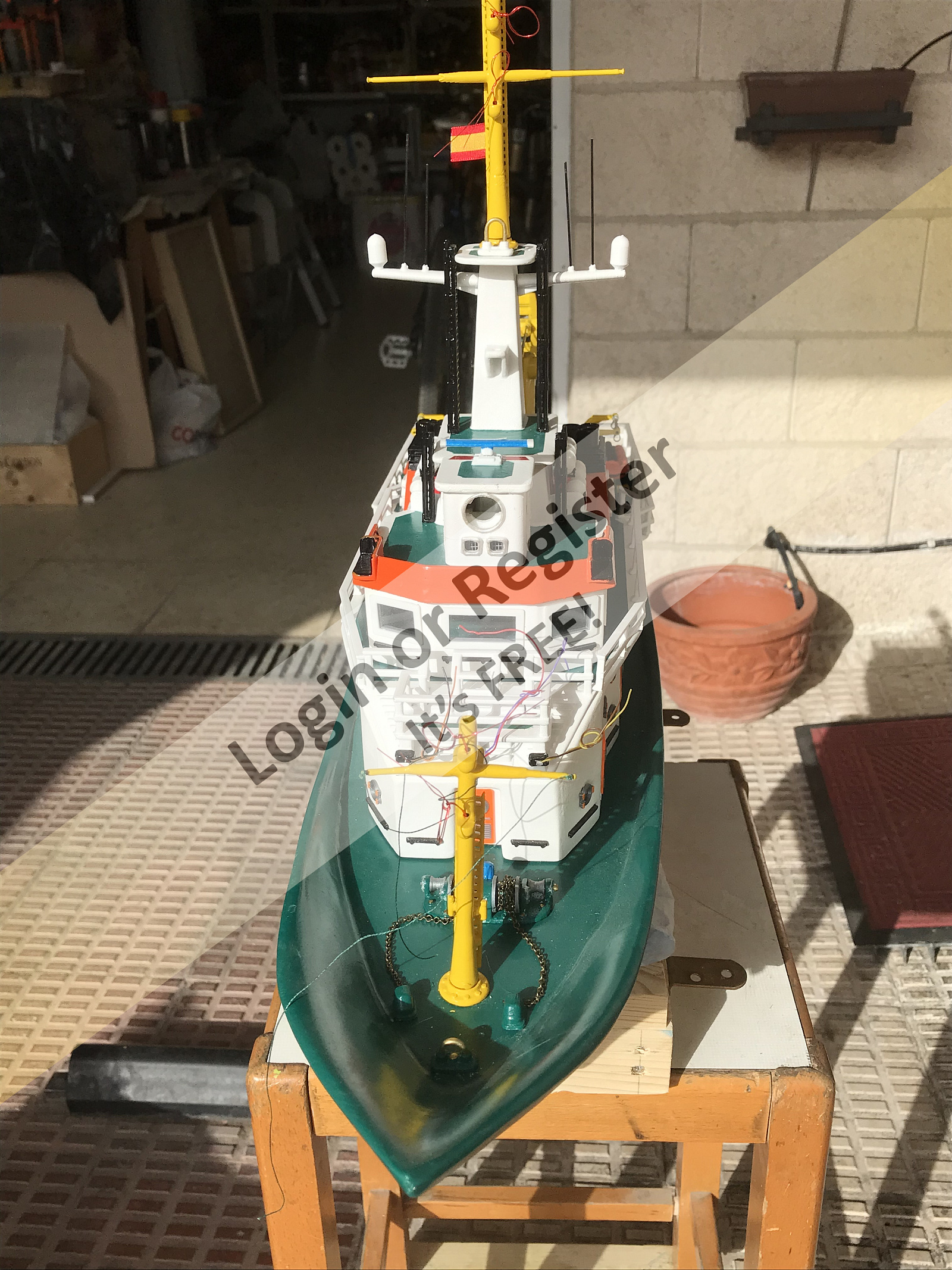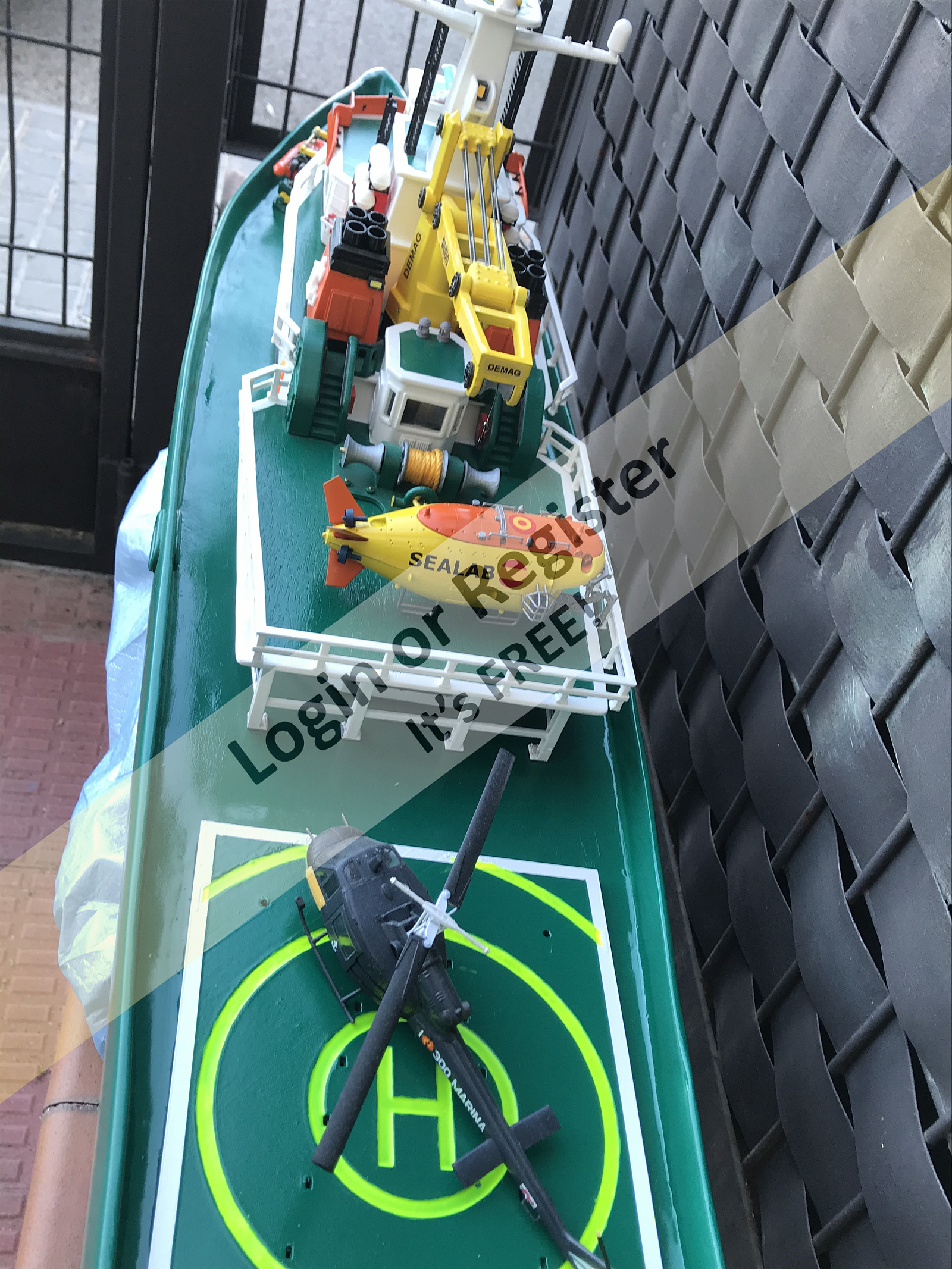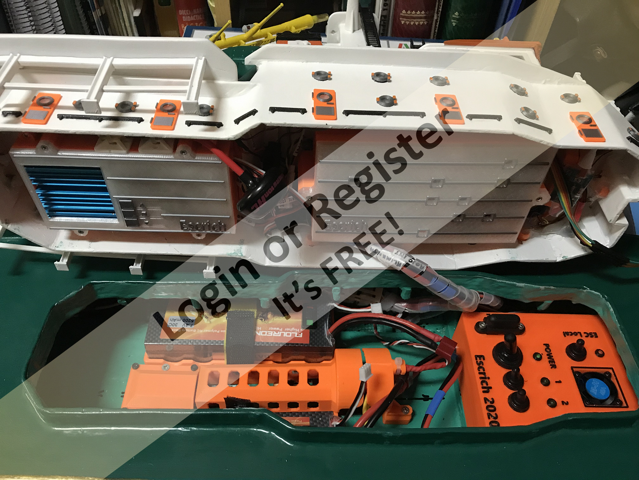This is a boat completely developed by me, it's not a reproduction of any other vessel, I was designing every parts and adding them to the boat, it's a floating laboratory, in this case the alternate name is Sealab 002, now it's still under construction, once finished will be an RC boat, with a lot of diferent remotelly controlled groups of lights, video camera and video recorder controlled from the transmitter, and also it will have temperature and battery monitoring, confirmation of RC signals, alarm protocol in the case of signal loss, bluetooth or ESPNOW external monitoring of signals and so, by the moment it's the second of a laboratory boats series, the scale is 1/72