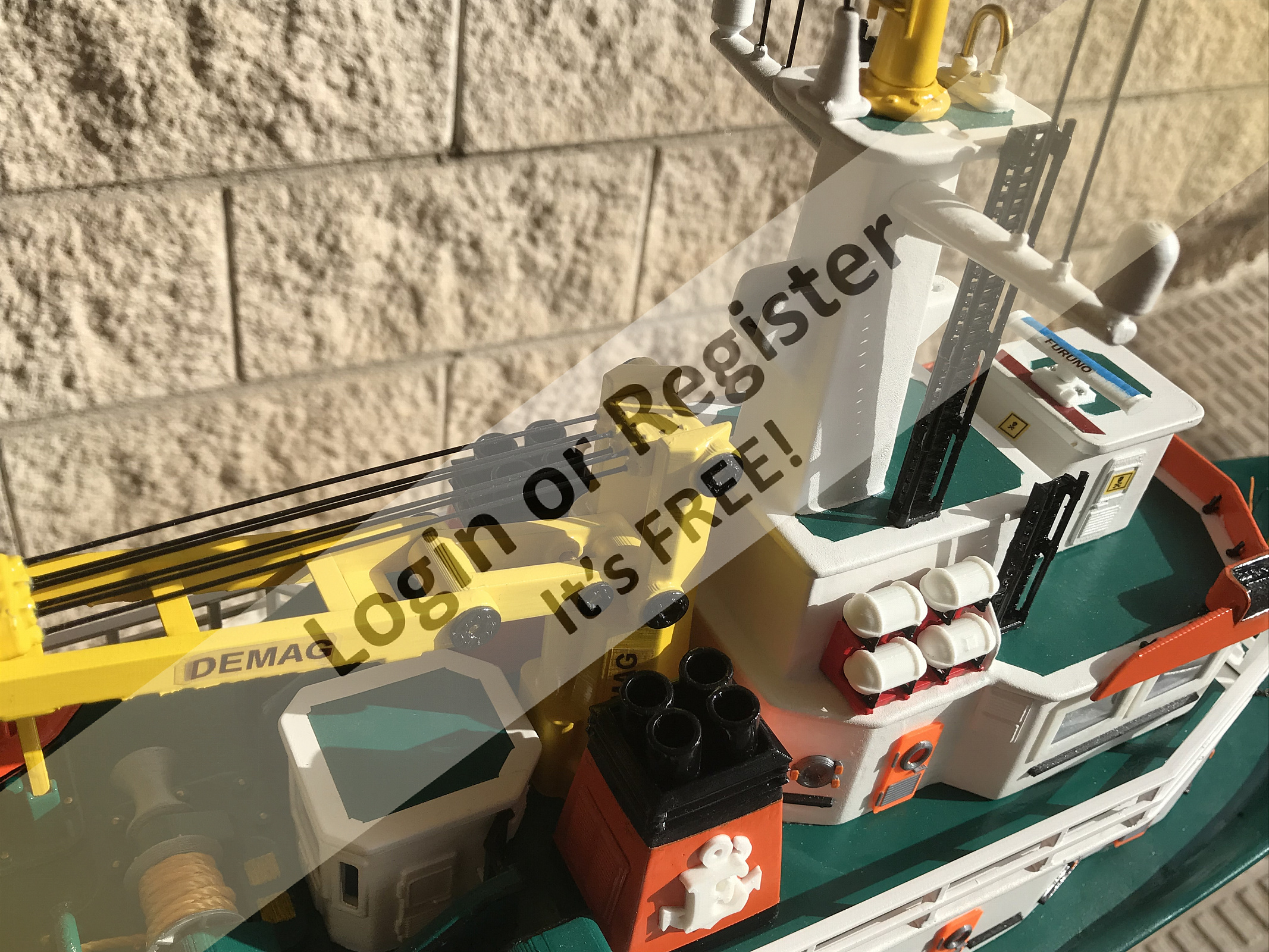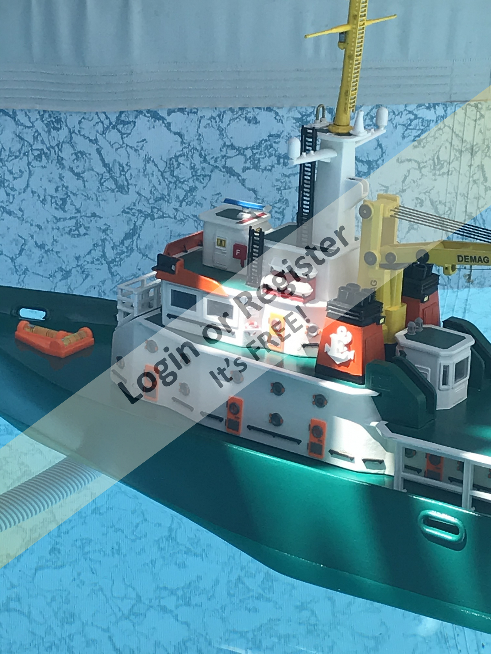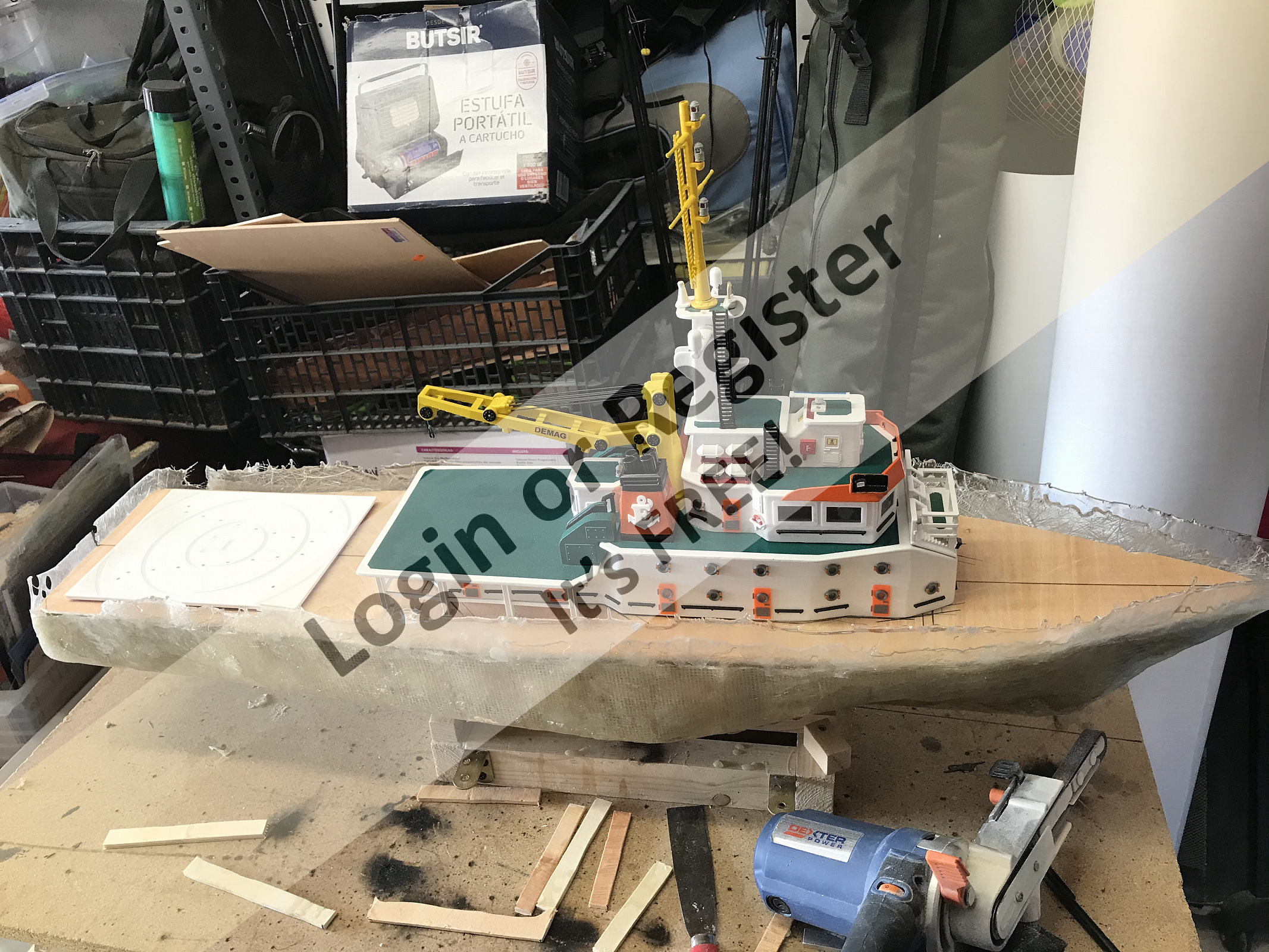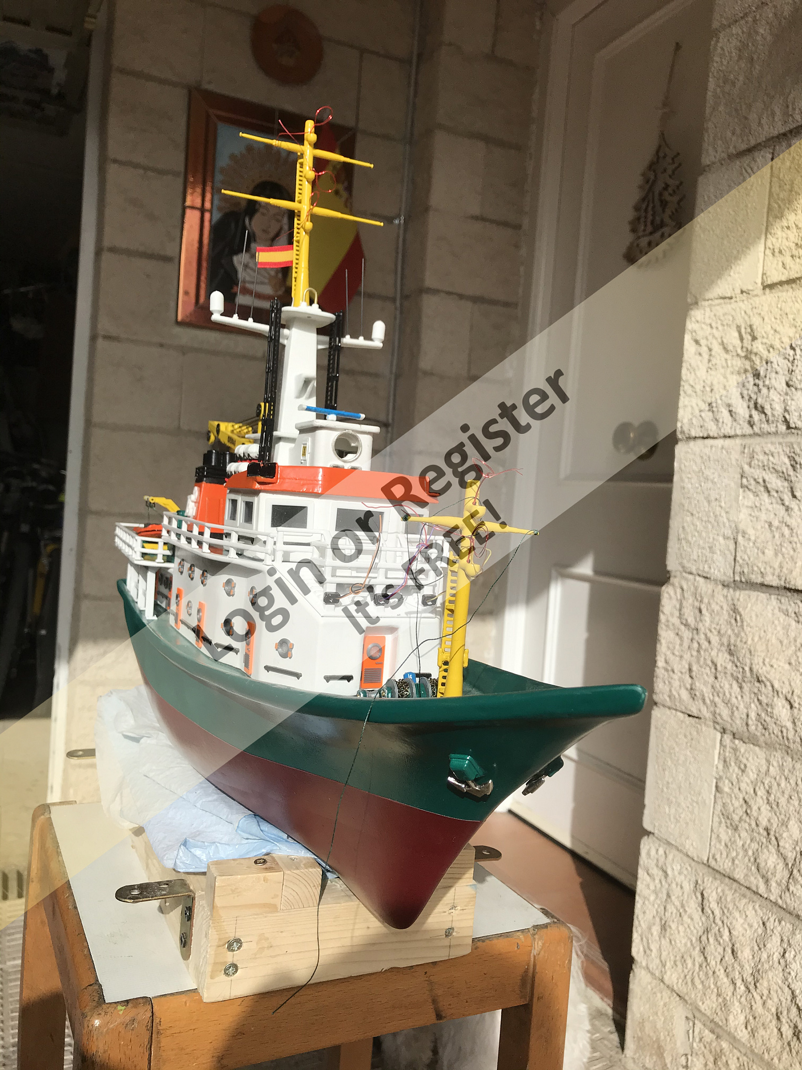 This is a boat completely developed by me, it's not a reproduction of any other vessel, I was designing every parts and adding them to the boat, it's a floating laboratory, in this case the alternate name is Sealab 002, now it's still under construction, once finished will be an RC boat, with a lot of diferent remotelly controlled groups of lights, video camera and video recorder controlled from the transmitter, and also it will have temperature and battery monitoring, confirmation of RC signals, alarm protocol in the case of signal loss, bluetooth or ESPNOW external monitoring of signals and so, by the moment it's the second of a laboratory boats series, the scale is 1/72