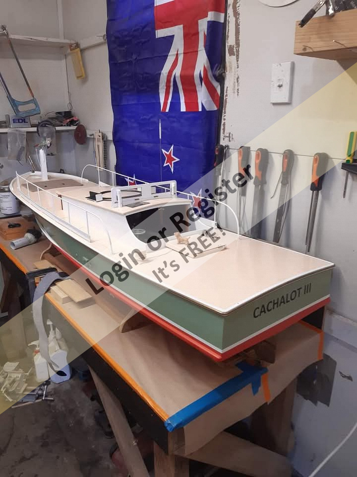These chasers were 36 foot long ..this model is 6 feet long and weighs 18 kgs .. Power is a 320 kv xera brushless motor ..max power 3.5 kw .. turning a 75mm propshop prop ..Its fast and fun to drive ๐ ..yes the harpoon is a bit dangerous ๐ณ๐๐. Cheers for asking ๐