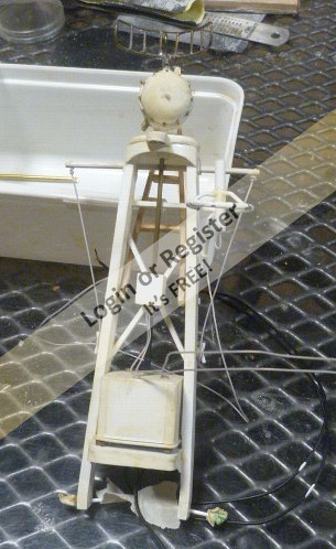 After the challenge of working on the Bofors gun, I decided to back off a bit and work on some deck features. Unfortunately my ambition got the best of me and I took a crack at the radar mast. This was drawn in detail with AutoCAD using the drawing shown as a scale reference.