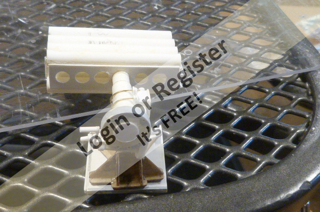 The gas canister was turned down on my lathe from a piece of ยฝโ OD acrylic rod. The inside was drilled out and a domed head, cut on my lathe from a broken mechanical pencil was solvent welded to the acrylic tube