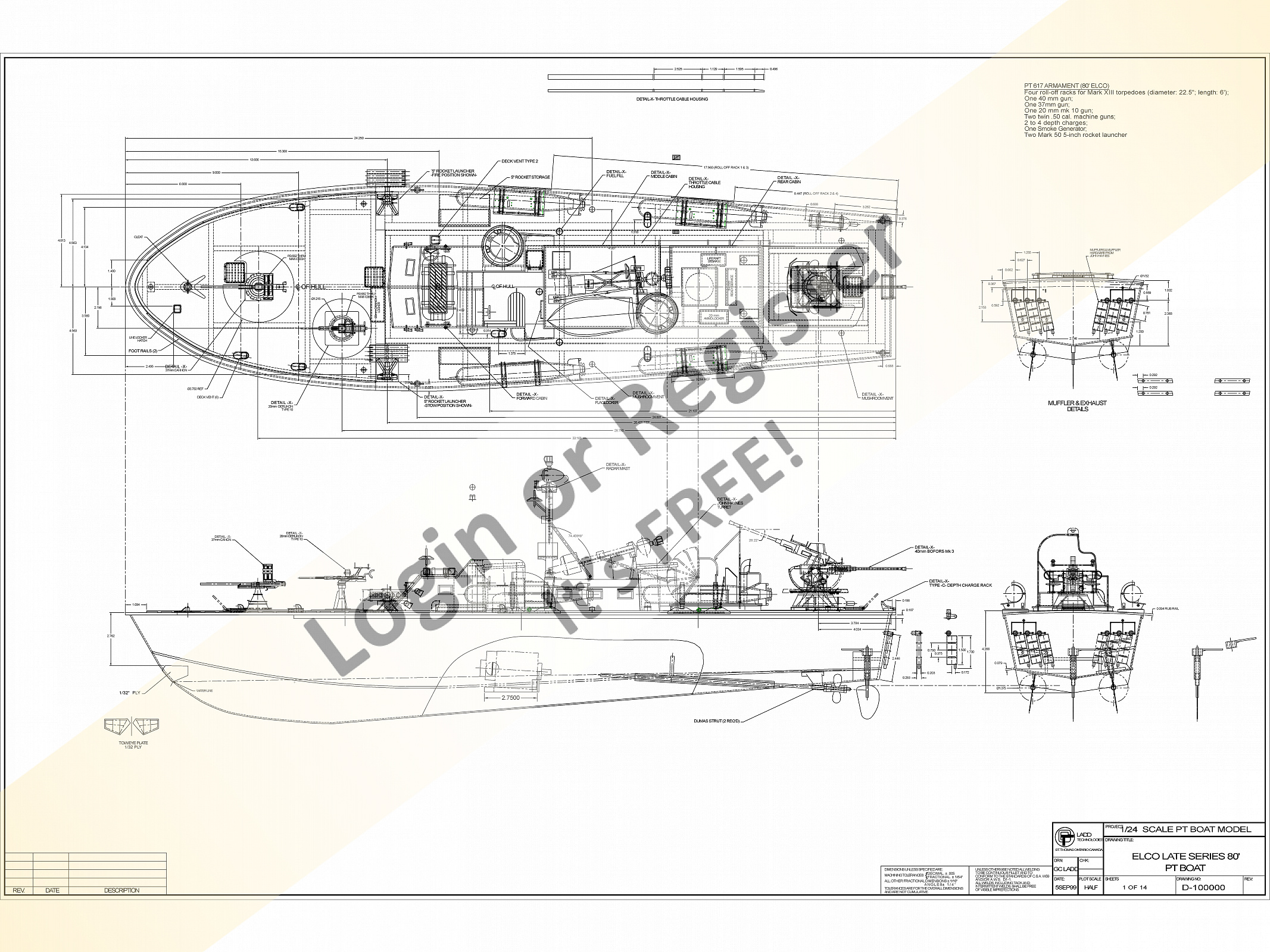 At this time I was working for a company that used AutoCAD as their primary design tool, so I decided to draw the model I wanted to build using this software. After many hours (thousands probablyโฆthis drawing has become absolutely huge over the years. I drew the assembly and details drawings in 1/24 (1/2โ = 1โ) scale for an 80โ late ware Elco, PT boat model with all parts and assembly details (many separate drawing sheets) based on Al Rossโs published drawings.