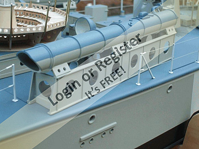 Torpedo tubes help hide hatch line. Another pic of 0.5 m/c guns shows cooling flutes on barrels.