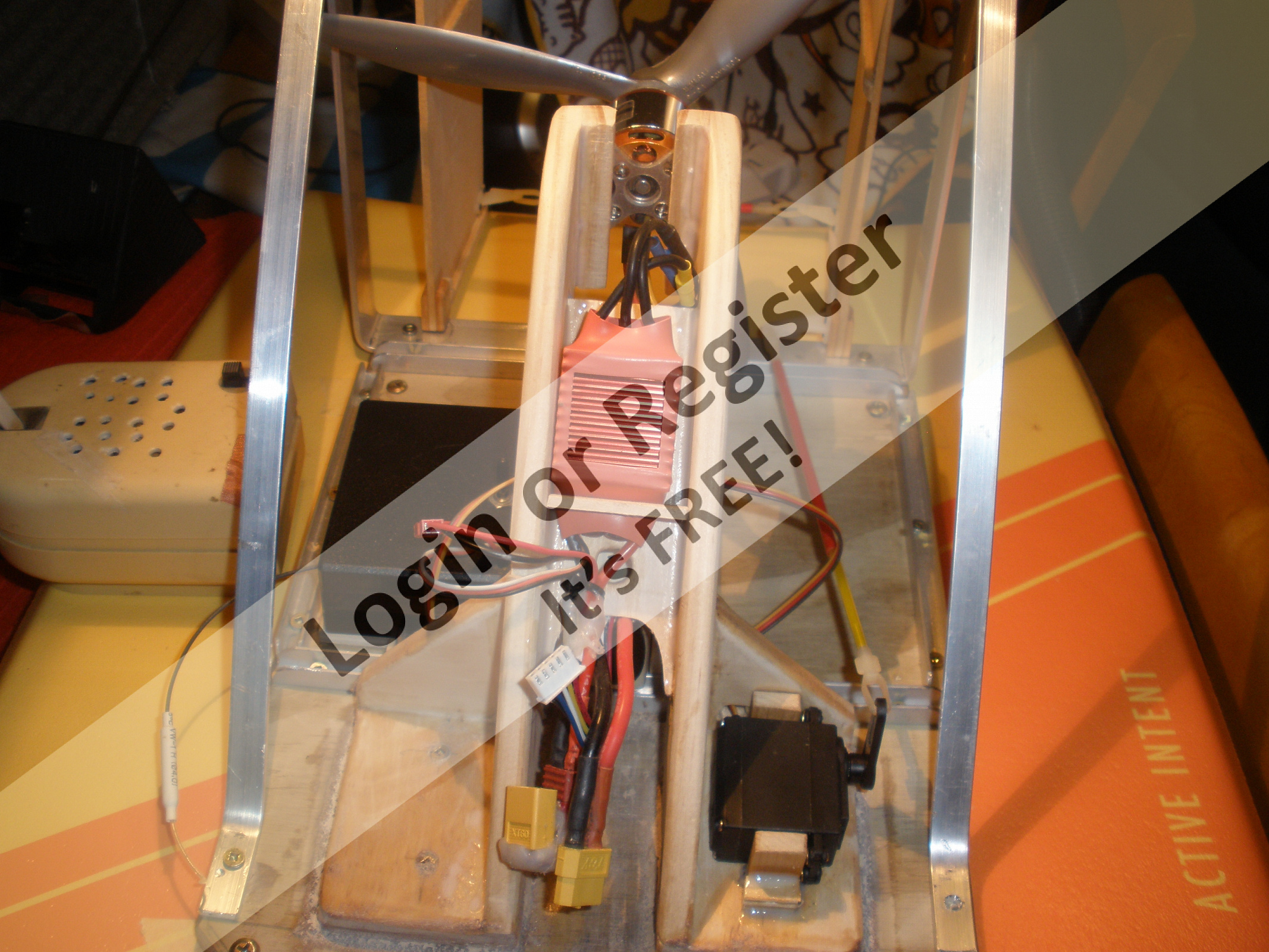 Could quite easily run on 3s for more economy, as it planes very easily. I got 20mins almost continuous running at the speed in the video, (on 30%) which is more than adequate, as it would be just idling around for videos. Quick to make and lots of fun. Motor mount screws onto 4 -30mm dowels epoxied into the body board.