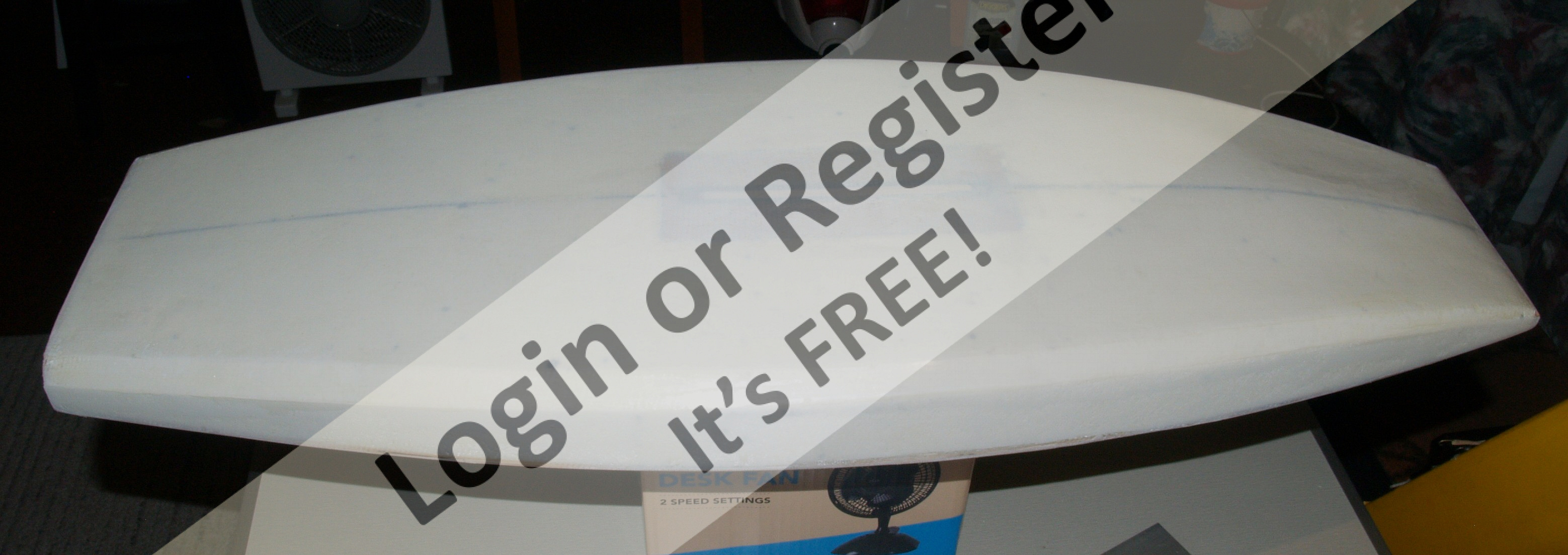 While waiting, I cut the decks from 5mm ply and shaped the bow sections. When the blanks were dry, I glued the decks on with lots of PVA glue, (which sticks foam well to wood,) and weighted them down with clamps sideways to stop them from moving. Left them for 2 days to set in my warm shed then gave the bows a rough shaping. Next was the fun part, shaping the hulls using a Surform file which creates a major mess with lots of vacuuming needed. The beauty of it is, is that the basic hulls were shaped and tapered (bow to stern) in about an hour. The laminating seams are used as a guide when shaping, plus eyeballing and straightedges.
