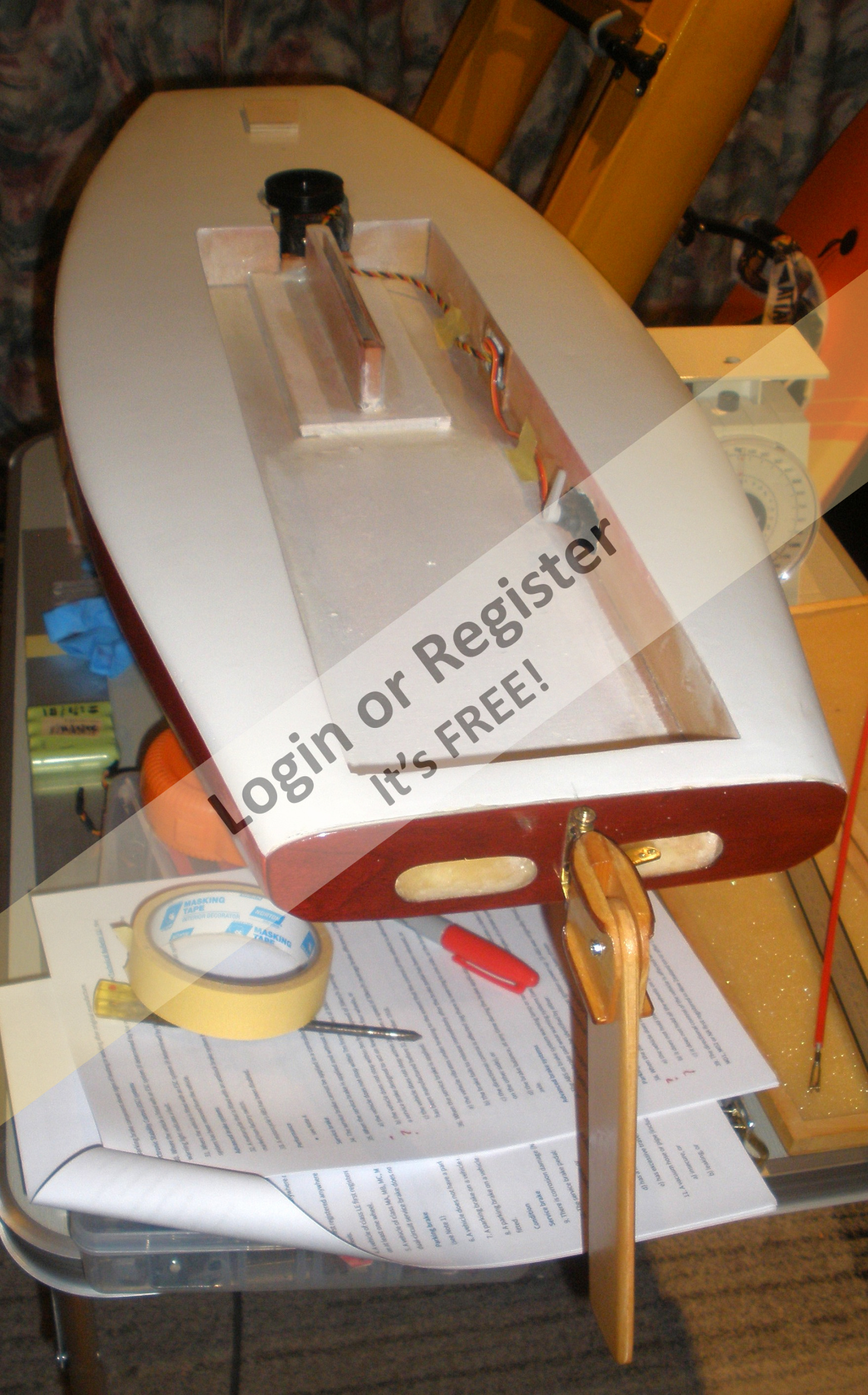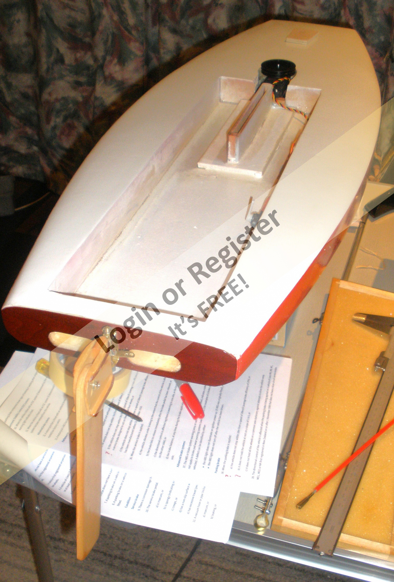 Making a bit of a start on my stretched Stiletto (more a Stilapier) at the moment, as it had been put aside while I had a play with a surface drive to fit to it, if I could get one working (see under surface drive experiment, in forum). I've shelved that idea till I can find a suitable universal for it, and have decided to use a modified cable drive instead (see under 'converting a cable drive to a standard drive', in forum) I wanted to settle on the drive type before starting fully, to make installation easier.