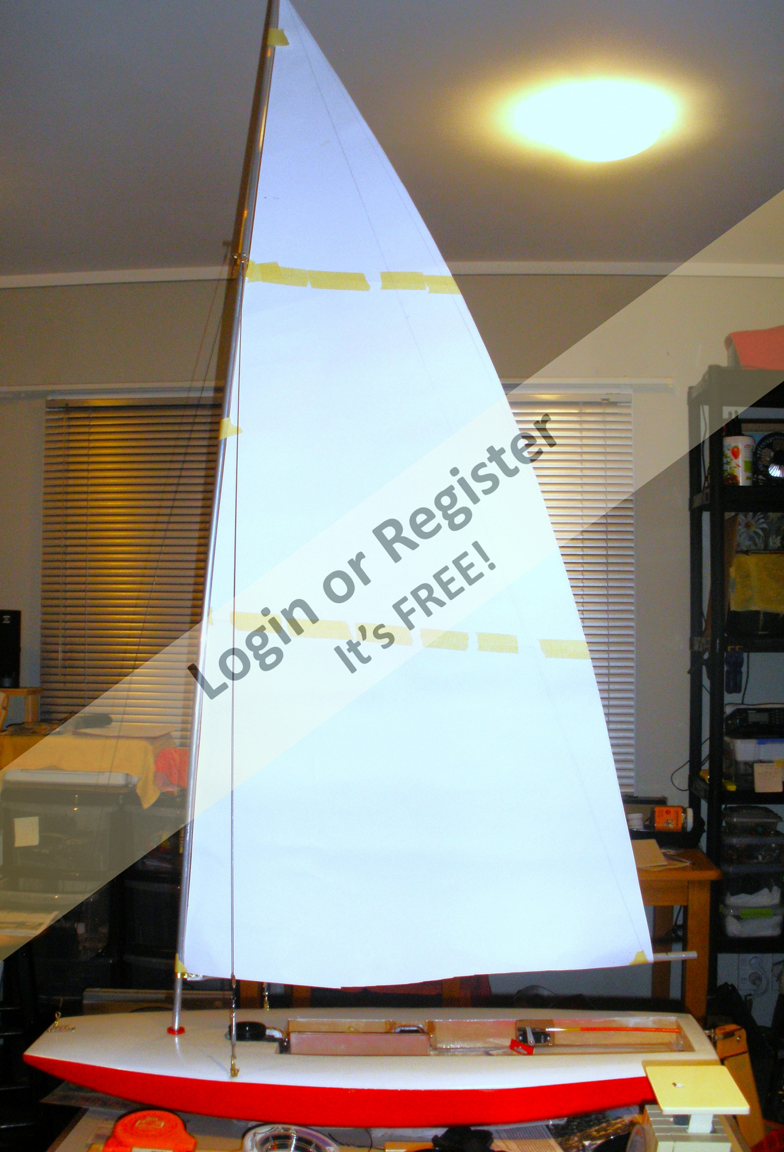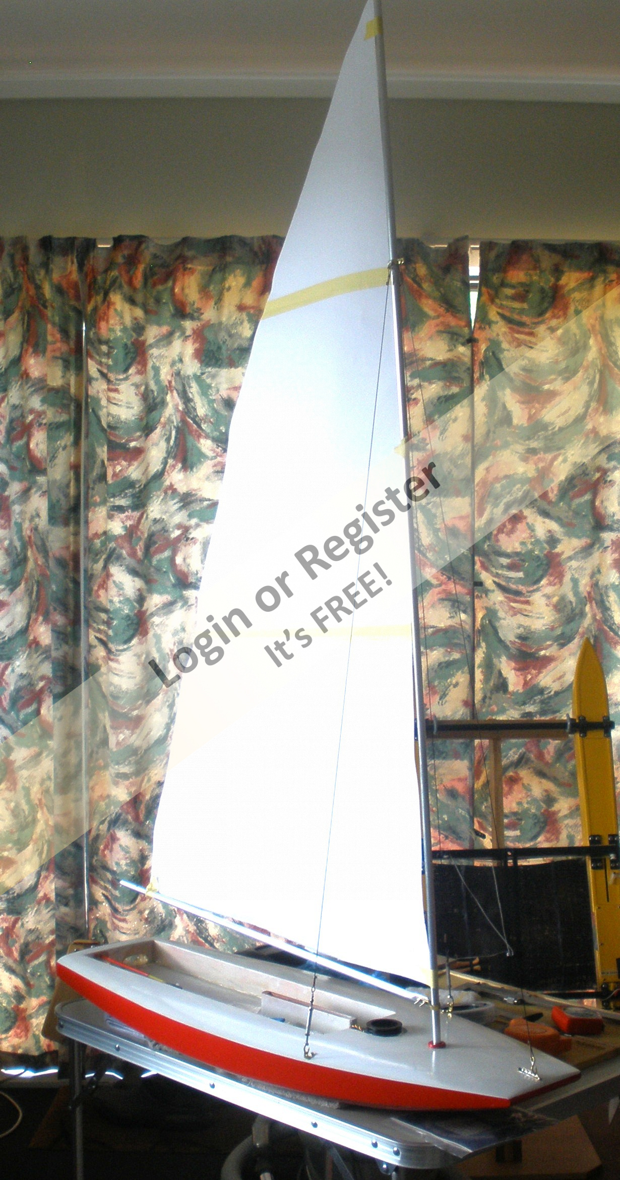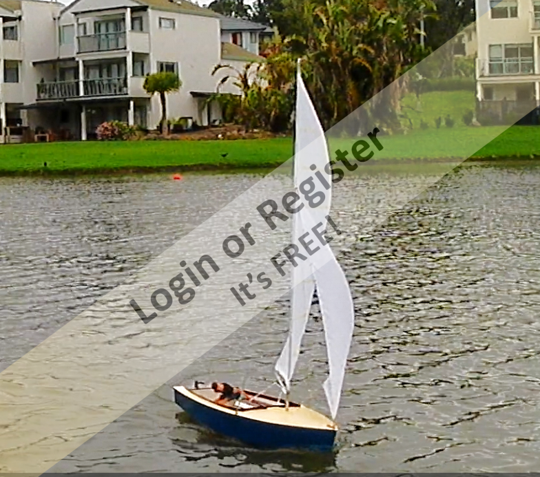 The mast on this is 1.486m tall, - sail is -luff -11.295, foot 609mm, so quite large for a small boat. The full sized boat is a lot of fun to sail, so this model will be interesting to sail. Unfortunately, without the human input required, and being a performance boat, it may assume the attributes of a submarine in a stiff breeze, - time and testing will tell.