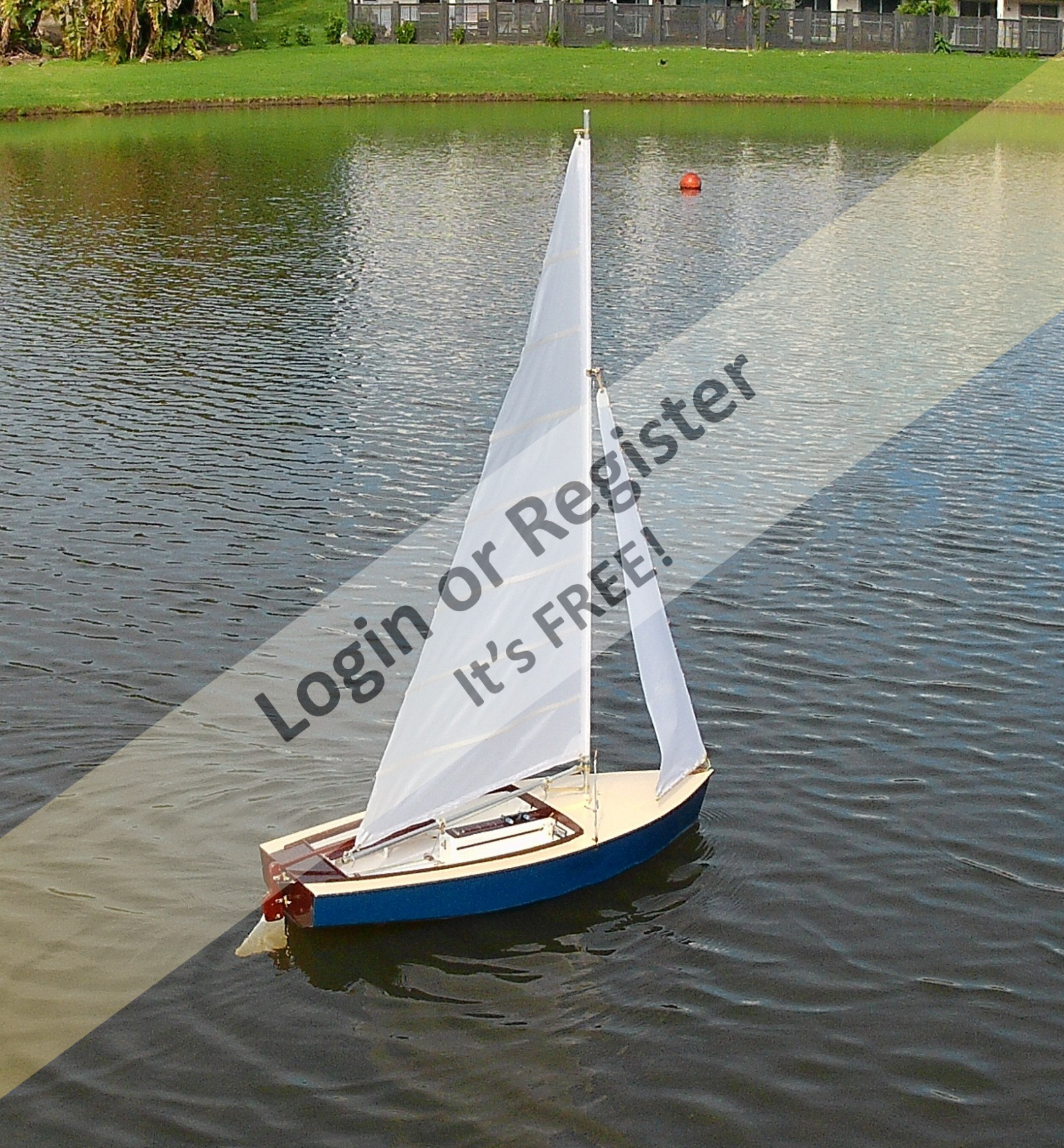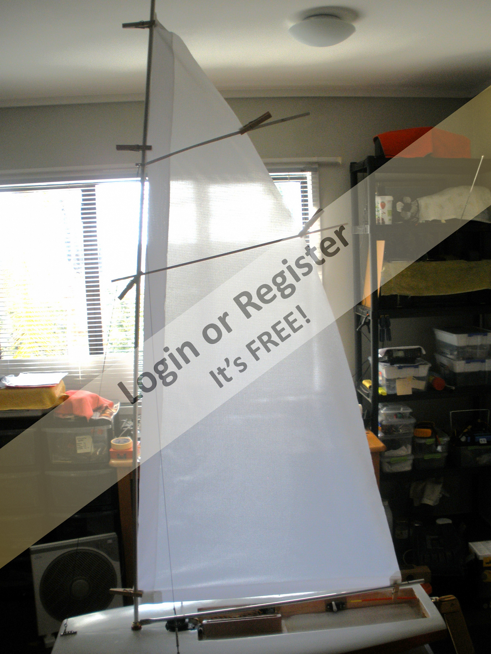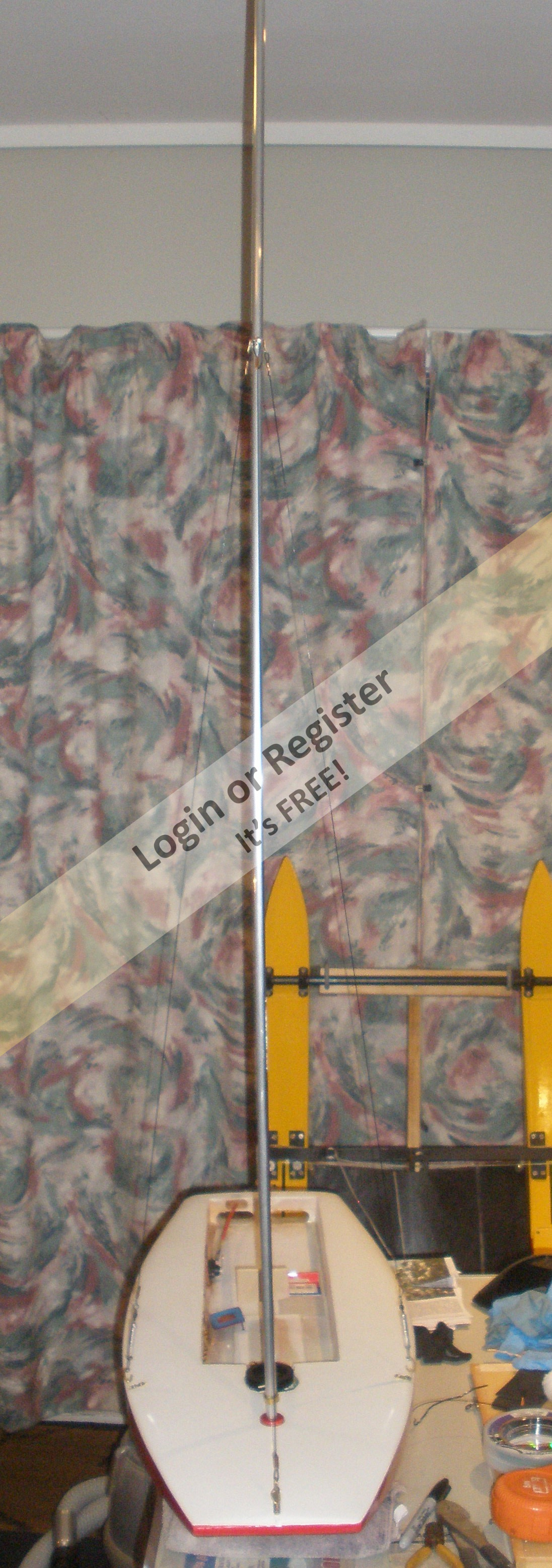 The mast on this is 1.486m tall, - sail is -luff -11.295, foot 609mm, so quite large for a small boat. The full sized boat is a lot of fun to sail, so this model will be interesting to sail. Unfortunately, without the human input required, and being a performance boat, it may assume the attributes of a submarine in a stiff breeze, - time and testing will tell.