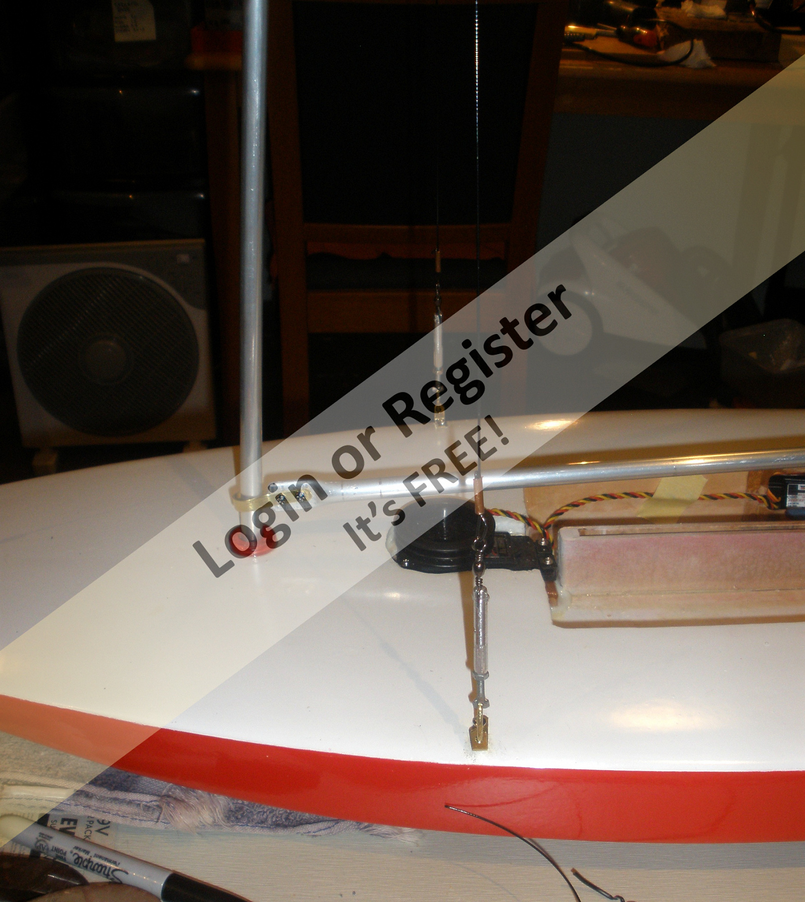 Now with long lasting LiPos there will be no need to remove the top for the whole day. I have two 'El Cheapo' winches to fit,- one for the jib and one for the main. Not sure how long they will last as they won't even center properly and sit there and hum most of the time. The alternative is a very expensive modern winch, around $600 or maybe a winch servo arm type, (still quite expensive).