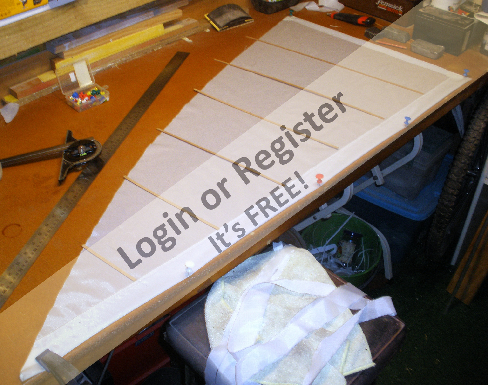 The basic mast was made from 12mm ally tube, boom from 10mm. Sail pattern was cut from art card to the plan. All laid out on the floor to get an idea of what it will look like.