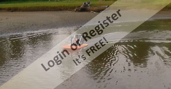 For a bit of fun i decided to knock up another airboat for rescue and camera work. made from a $19 body board with a 3542 1000kv TGY outrunner running on a 4s Lipo, with a 10x6 pusher prop. Went fairly well on it's first test using only about 30% power, but needed some up thrust and rudder trim for much more throttle. Probably needs some small bottom strakes to limit the drifting tendency and make it easier to control, (did this with the first airboat which manages 30kph)