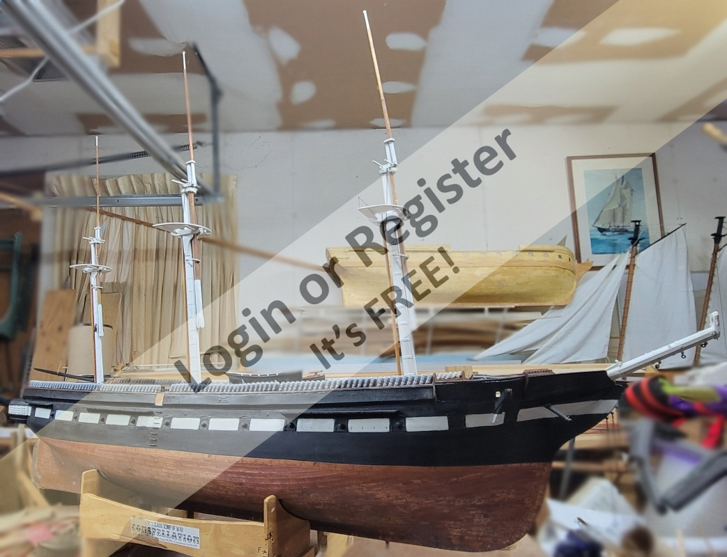 The last pic is the actual boat in the Pacific in 1982. I edited in the main tops'l to show the rig I plan to set. She also had a ringtail, stuns'ls, and a main topmast stays'l, none of which I plan to use.