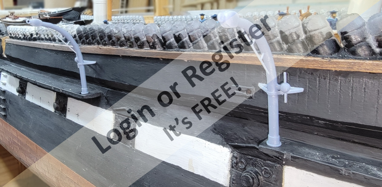 This is where things stand at the moment (June 25 2022). The pic with the gun is a 3D printed test of a gun for my Macedonian model (1:36 scale) which seems to be just right for the 1:20 scale Pride, which will benefit from 3D printing with guns, gunport lids, a much crisper name board on her stern, along with the Baltimore emblem that was back there.