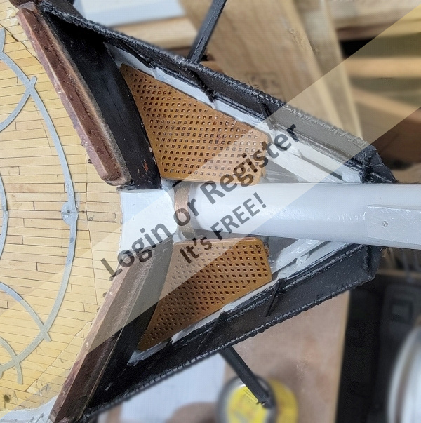 Originally her controls were going to be a Mega-arm sail servo and a winch servo, with the winch driving a loop. That was changed to two arm servo controlling my Semaphore-Sheeting system used successfully in Constellation for the over-lapping heads'ls. That wasn't going to work on Pride mostly because space limitations (vertically inside the hull).