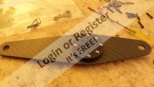 Finished arm shows the pressed in glass eyelets and hub mounted. Then, finally shown mocked up in a current build.