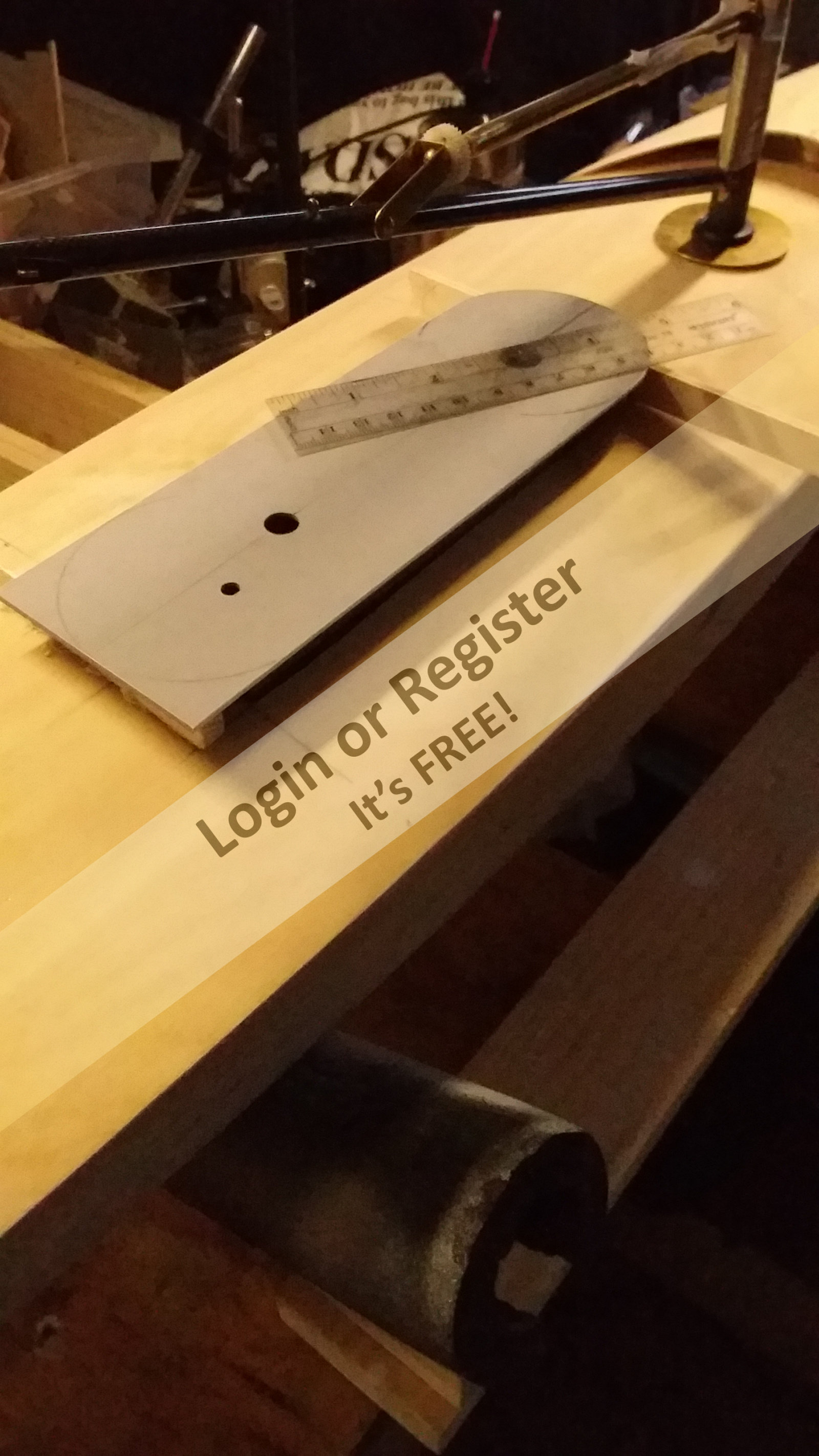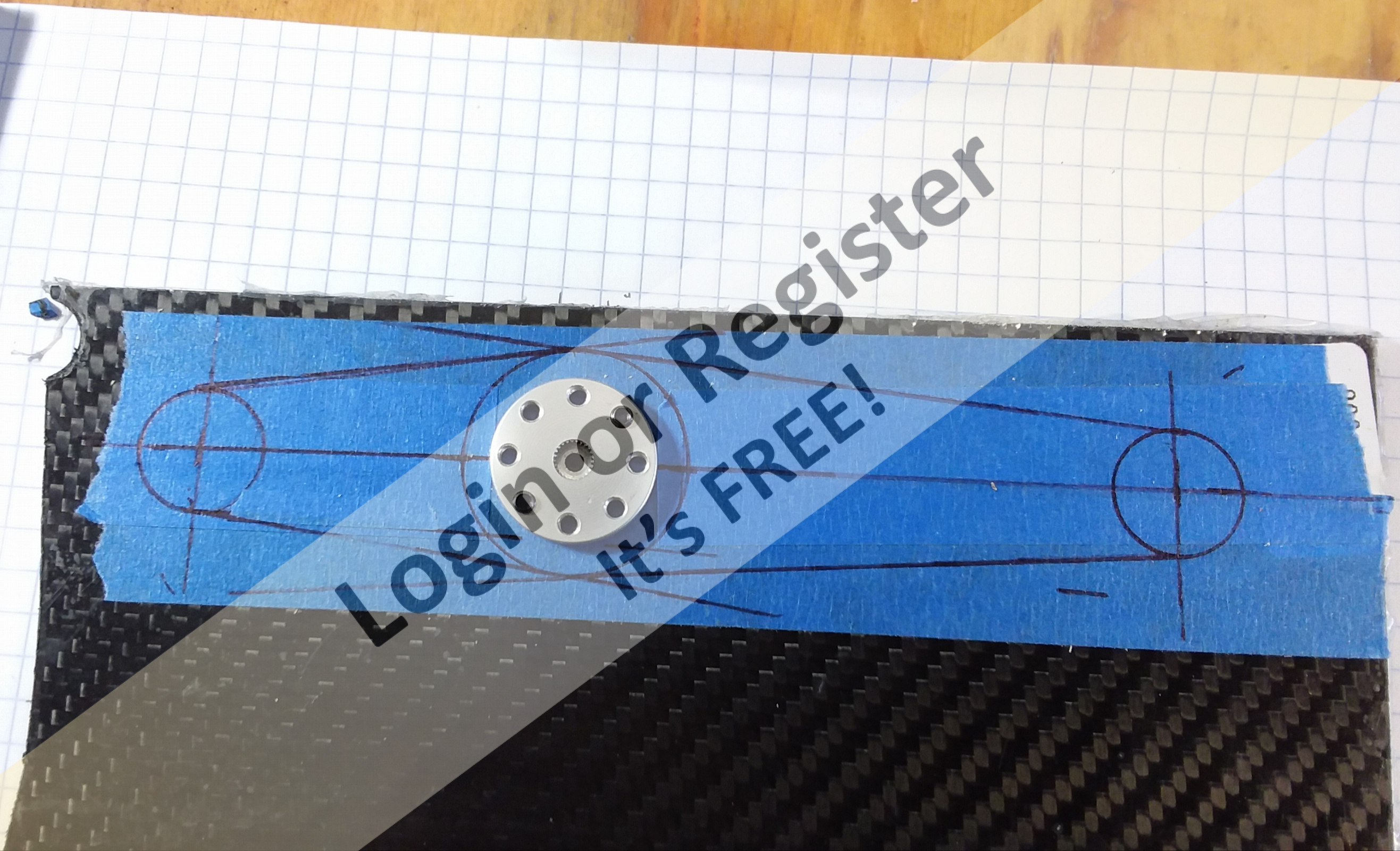 Starts out as with all of my designs, I sketch options and then creative final drawing to full size in graph paper. To transfer this design to the carbon sheet, I use some masking tape and cover an area of the cf sheet. Then I redraw on the masking tape with a thin sharpie. Then I cut out the arm on my bandsaw while wearing safety glasses and a mask. The carbon fiber dust and slivers are nasty, don't want to breath at all. Still trying to dig a sliver out of my finger so you might consider gloves as well.