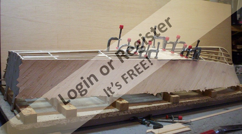 I myself have diagonally planked several hulls; even the one you are building the RTTL hull - and I tend to add stringers from bow to stern - maybe 2 on the side and 2 on the top - of each side of the hull. This serves 3 purposes; 1 it aides a bit more strength to the hull, 2 you can follow the true shape of the hull as in concave of the bottom and on the sides, 3 it gives you an extra place to clamp your planks to.