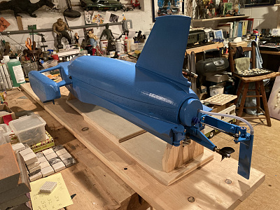 a ducted fan driven Bluebird is not a simple matter - I myself spent a good few years doing a lot of research -collecting plans and data from all over the place. Any person who is confessing to have built or is building an exact scale of Bluebird K7 to be driven by a ducted fan - I myself would be very sceptical. The reason I come up with this statement is I have done it myself and built the model. My model is pretty successful. My model is driven by a 80 mm ducted fan and I think it was 2 x 6S lipo batteries. The model is made basically from very lite ply and balsa wood. I had to think of a way to increase the flow of air into the ducted fan as on the model the canopy (if it is solid) will restrict airflow (only on a ducted fan and not gas turbine).