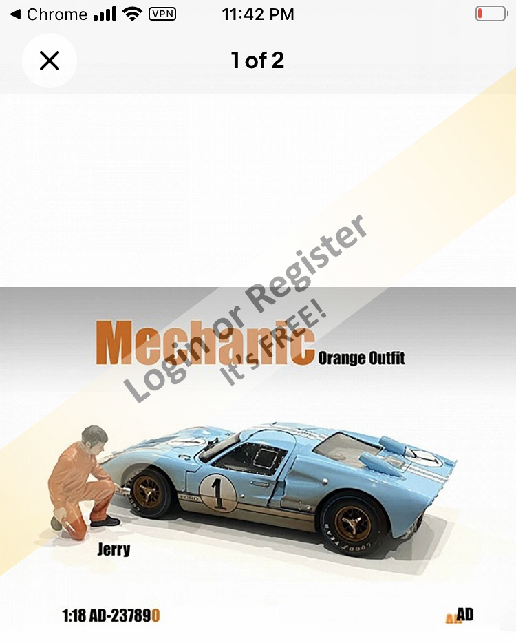 There are a lot of figures in 1/18 scale, which would be just a little larger if you canโt find any 1/20 figures. A 6โ man in 1/20 will stand 3.4 inches tall, while a 1/18 would be exactly 4โ tall. Many are made by American diorama, and include men in many poses and women. As people are not all the same size, it wouldnโt be very noticible. I have quite a variety of 1/18 figures displayed with 1/18 die cast cars. A kneeling 1:18 mechanic is shown below.