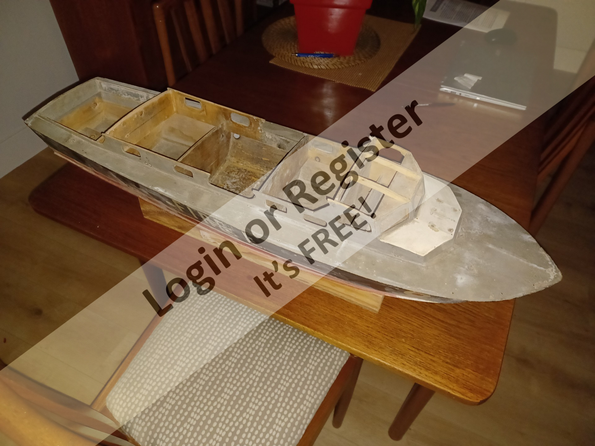 Harry, many thanks for the plans and photos. I'm not sure how old this boat is or when it was last in water. But have attached a pic of the motor and rudder servo that were in it 3 weeks ago.