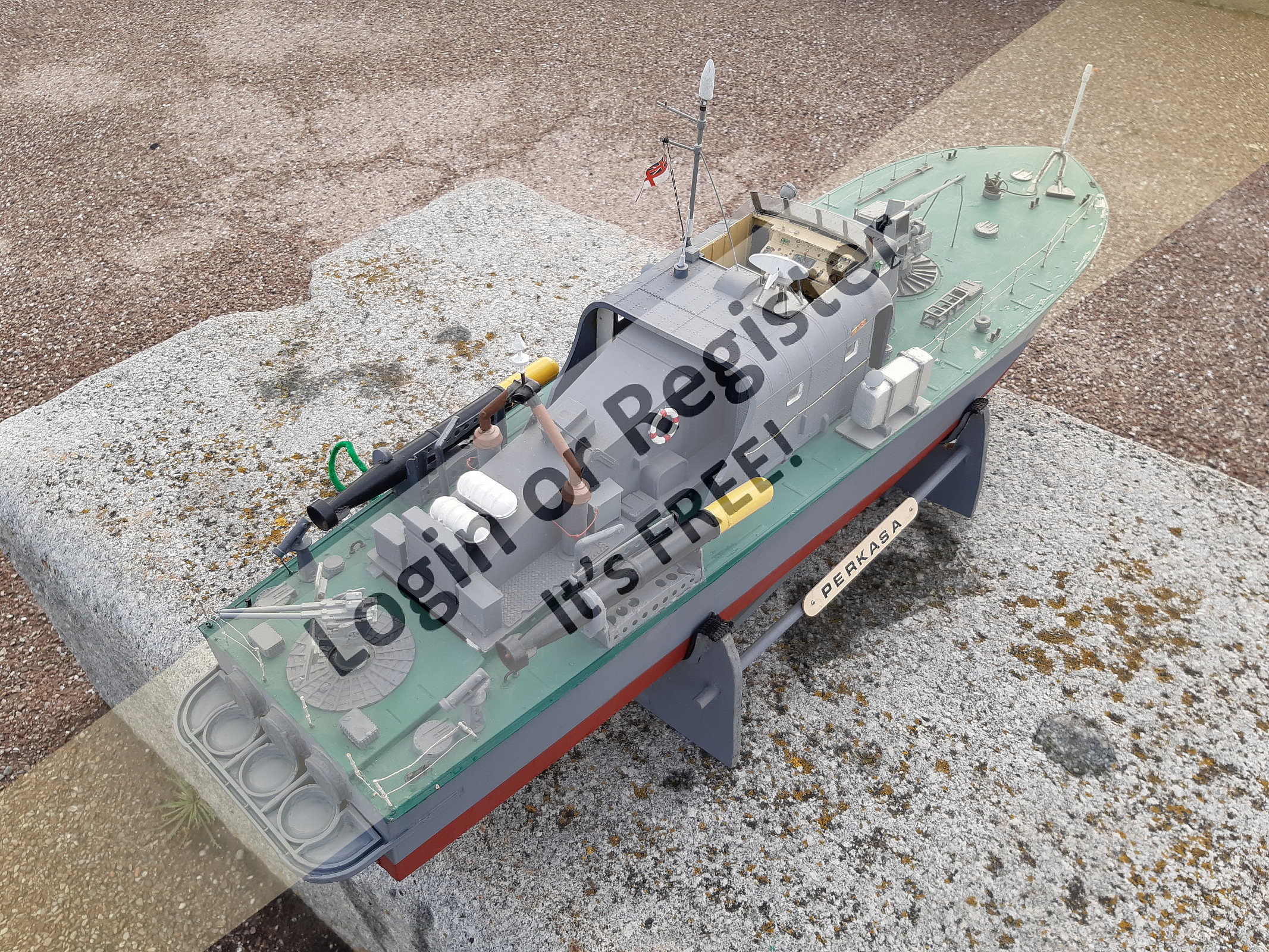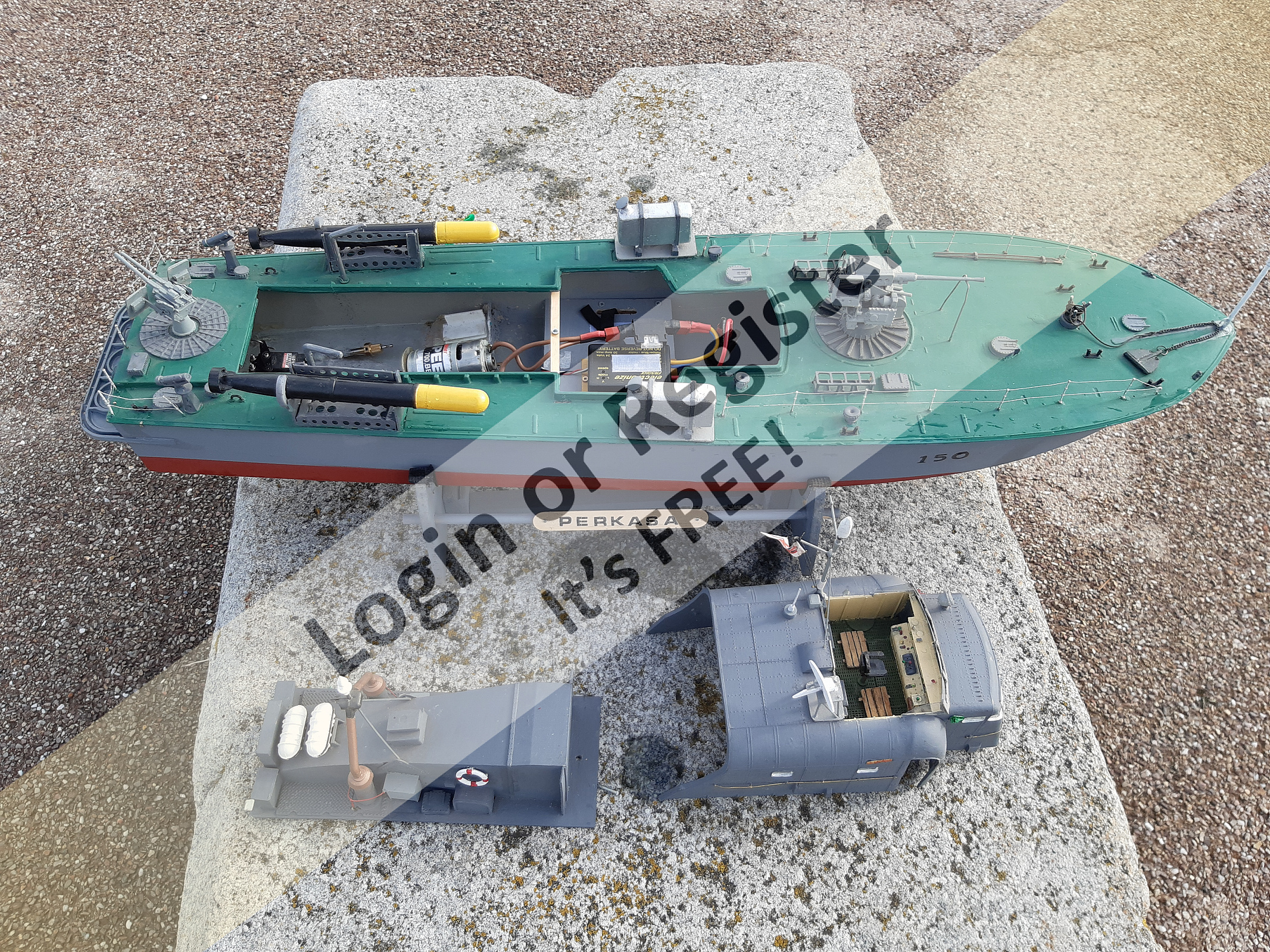 This is a bargain for a real nice hard grp plastic model. It has nice detail, and no wood rot or delamination worries. It will offer a nice project for someone who wants to make it run and perform to suit their own style. I will include the original 3 motors, props, shafts etc so if you want to go back to triple screw you can.