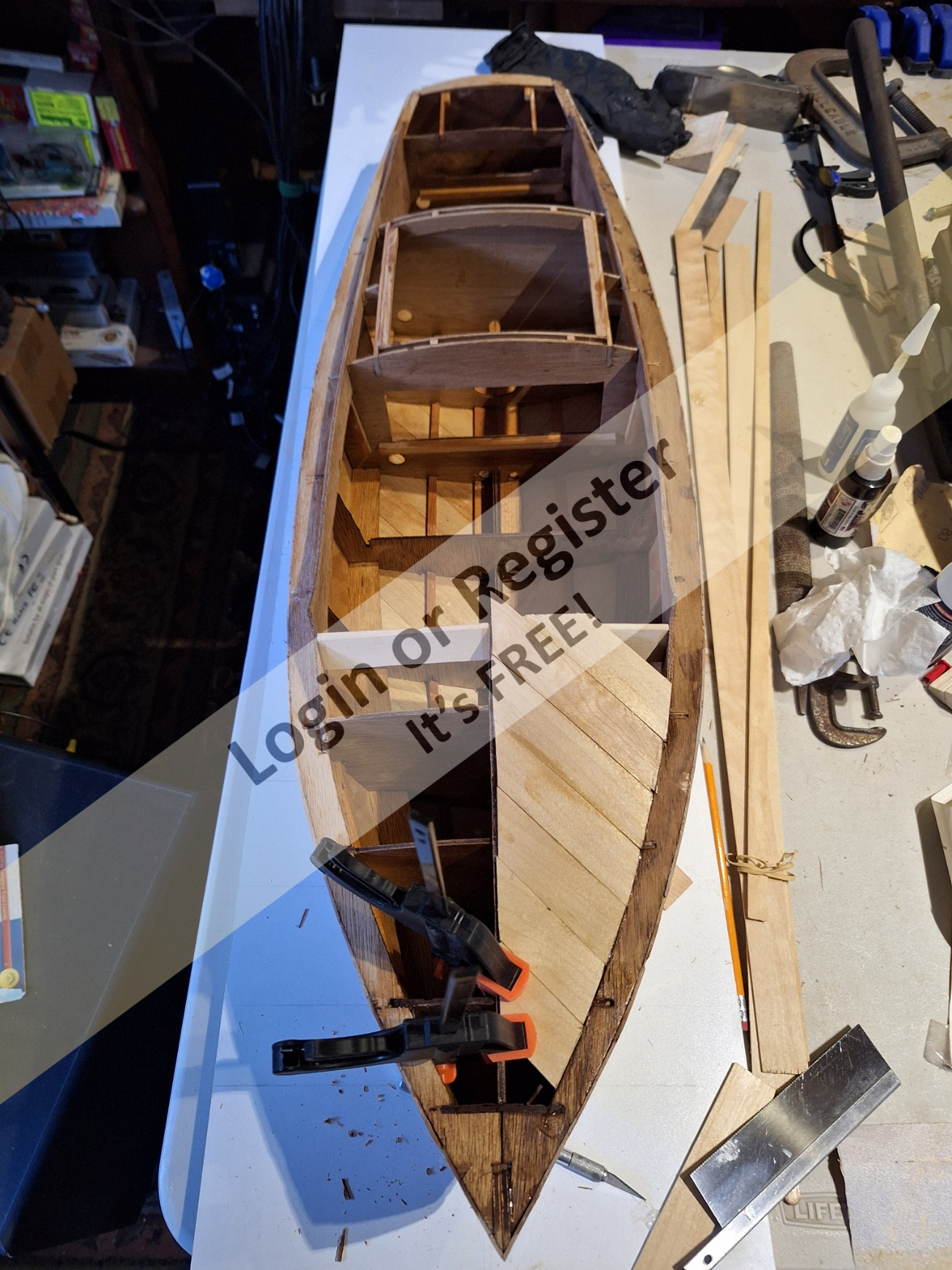 Planking the hull.